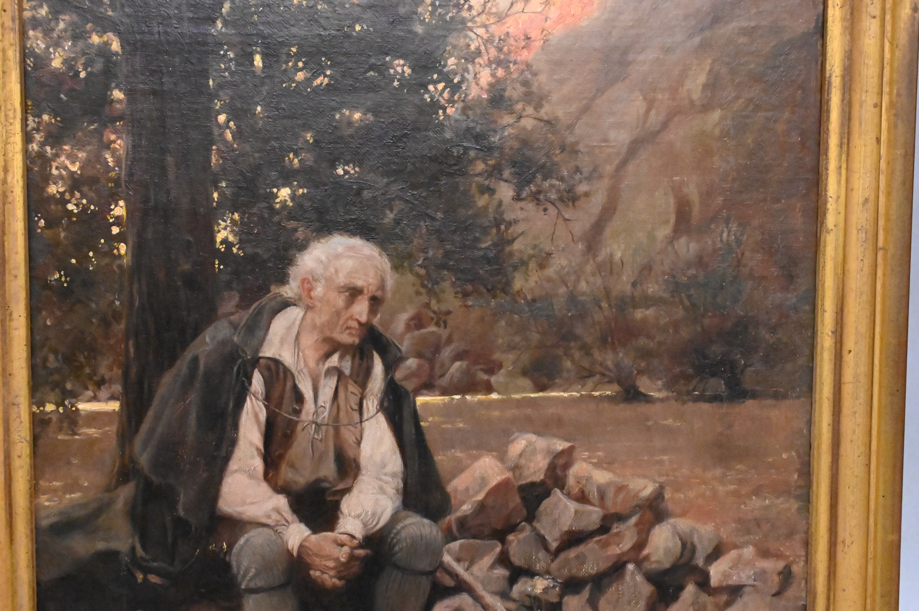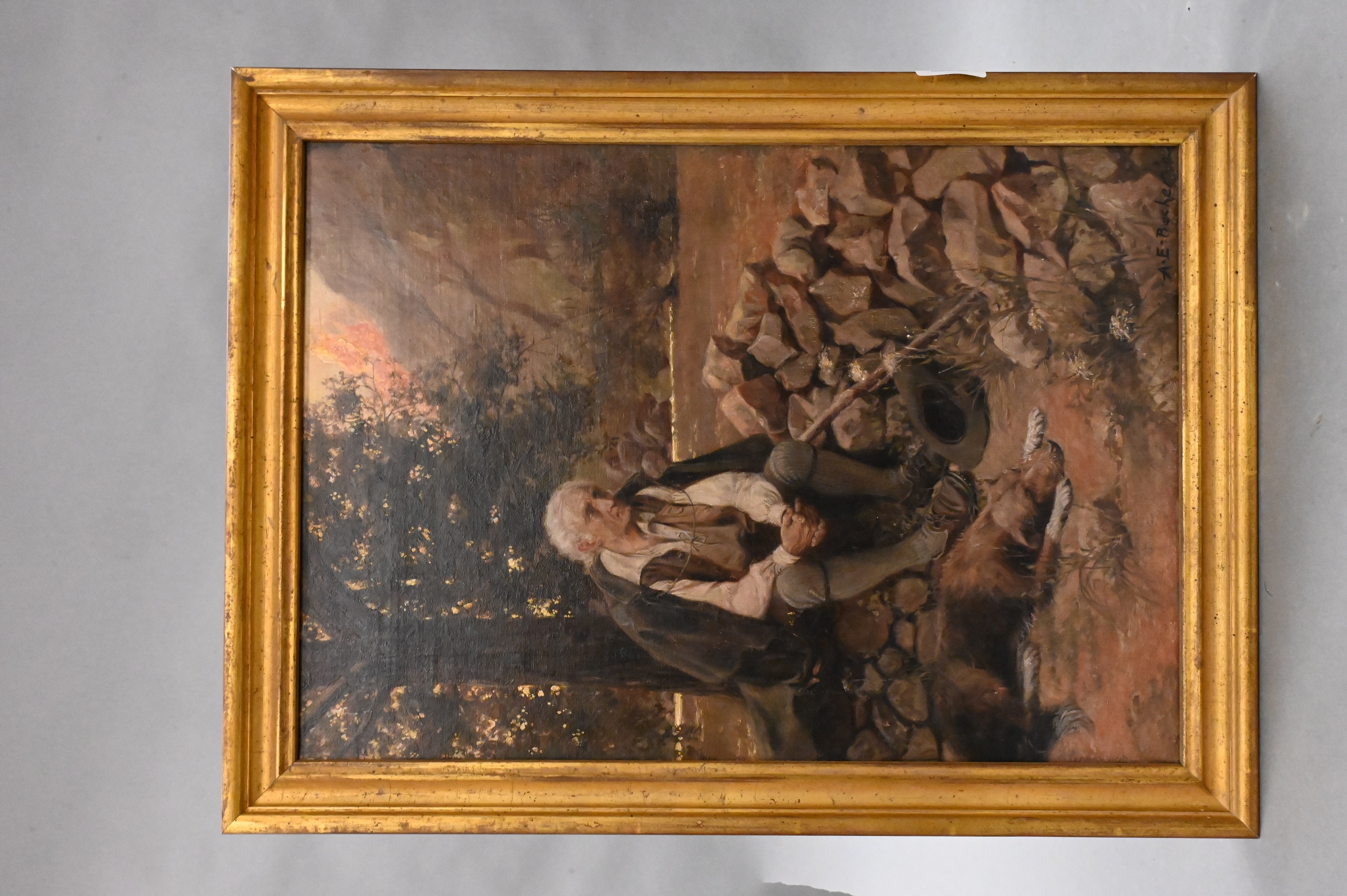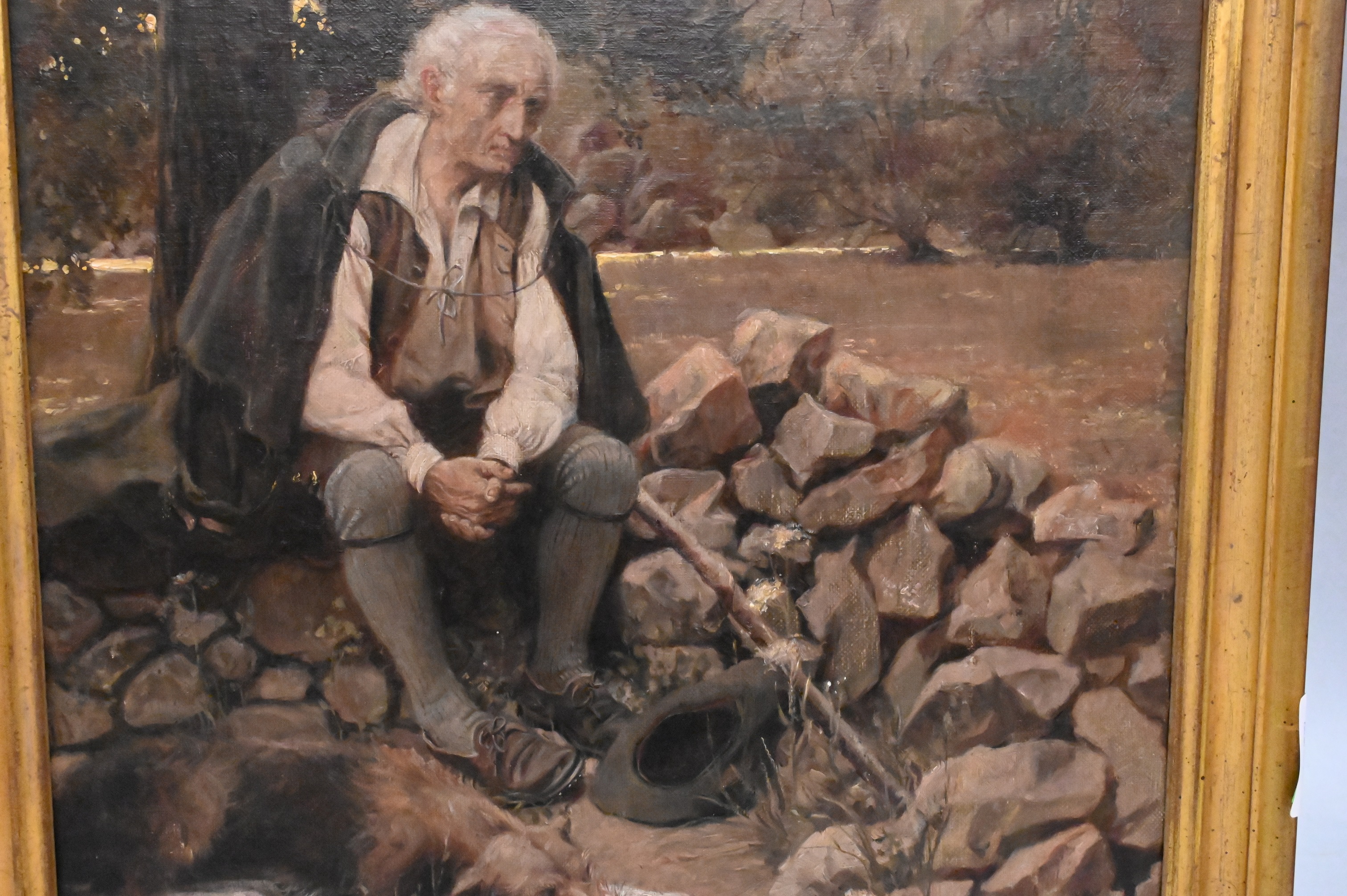 Lot 179: Old man and dog in a landscape