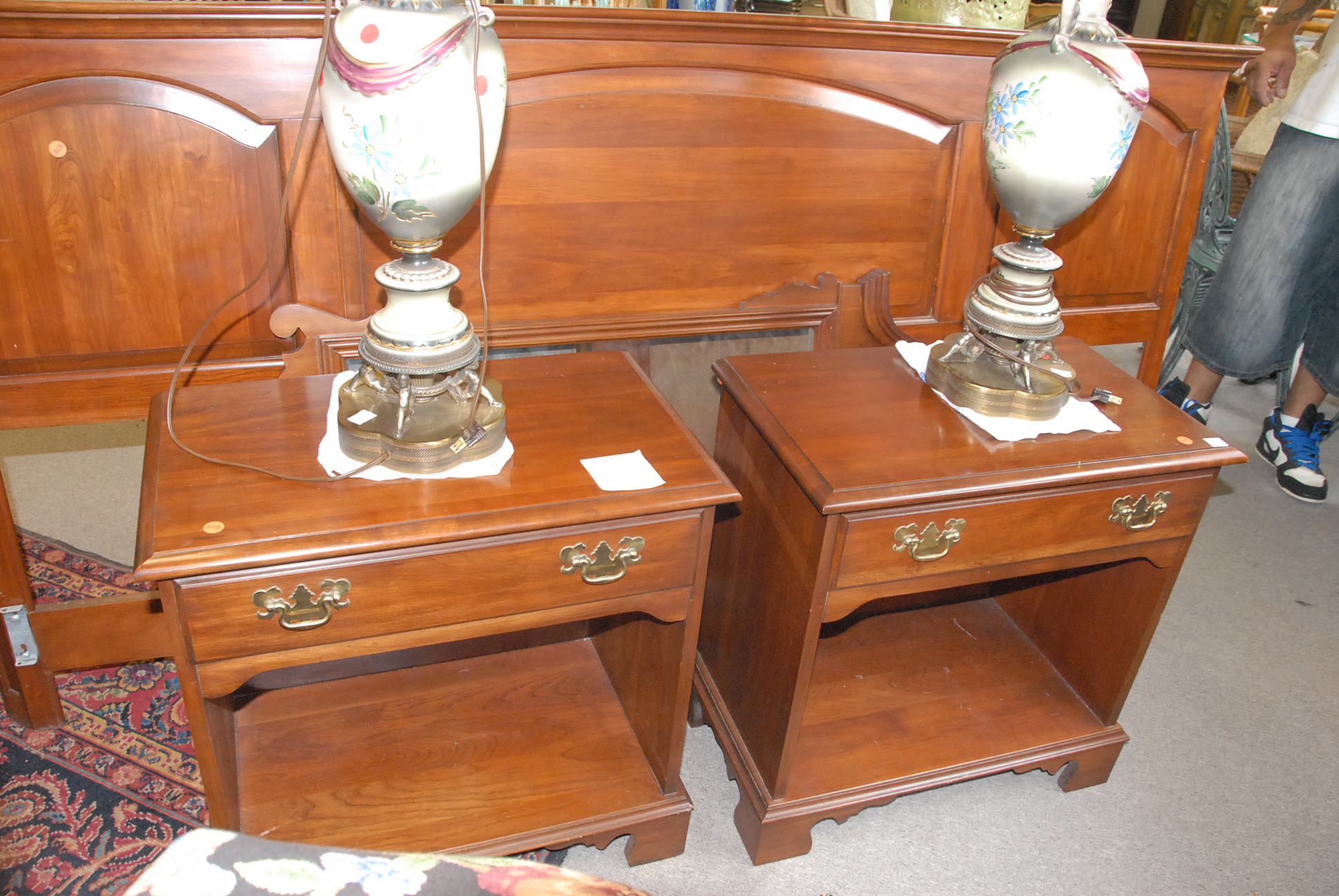 Pennsylvania House cherry bedroom set to include a chest, mirror, king size headboard, and two night tables.
