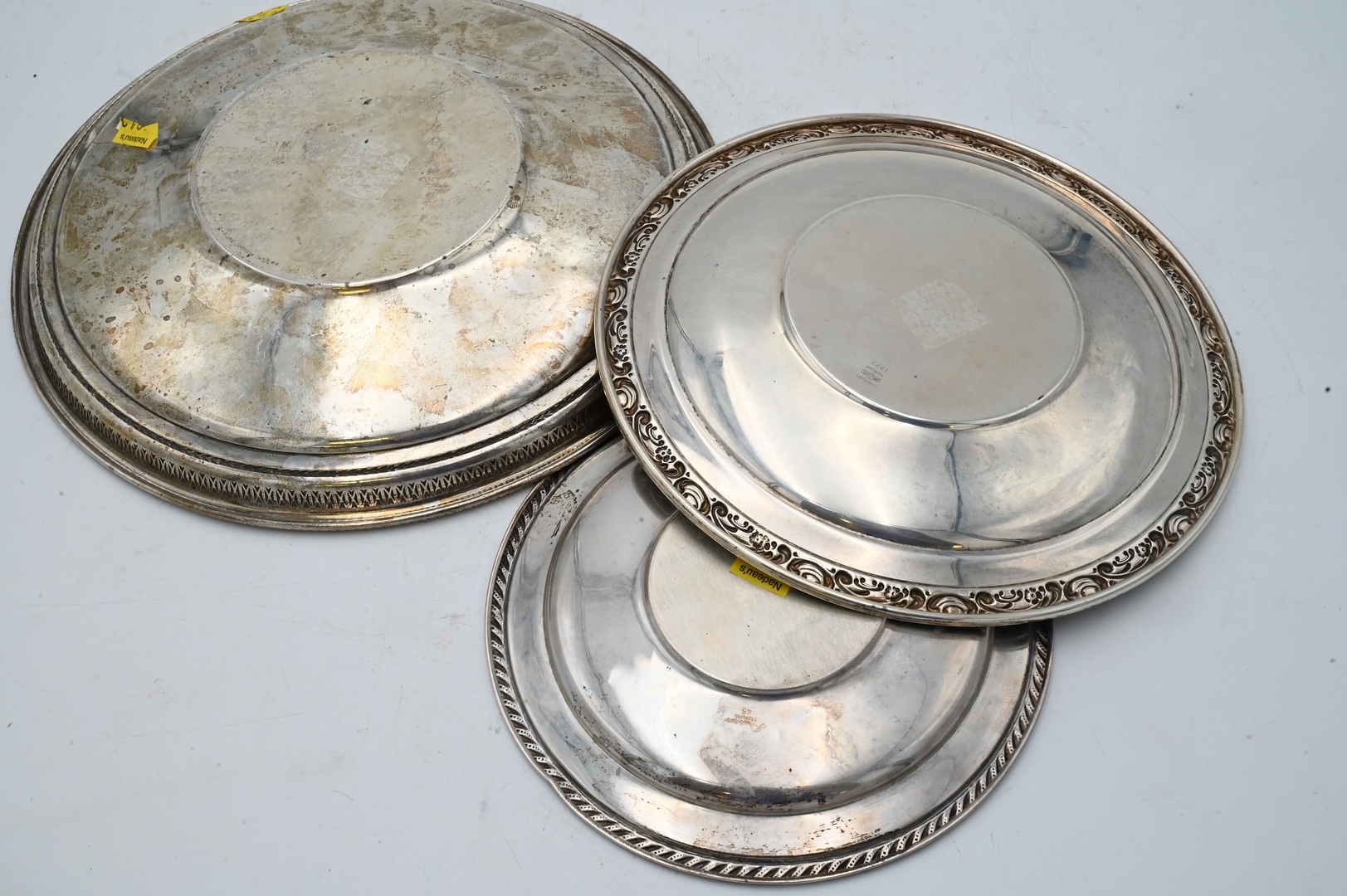 Three Sterling Silver Round Trays, to include one Gorham, largest in diameter 11 inches, 19.745 t.oz.