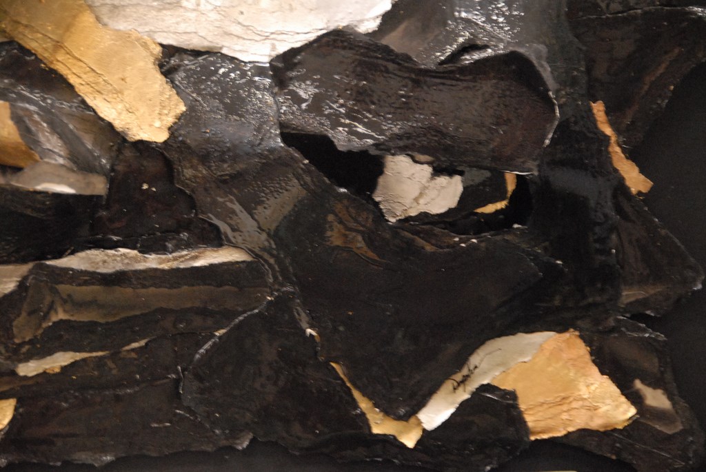 Lot 179: Two three-dimensional pieces of art, one black, gold, and silver signed lower right Dapha and the other signed Curtis Jere 1996.