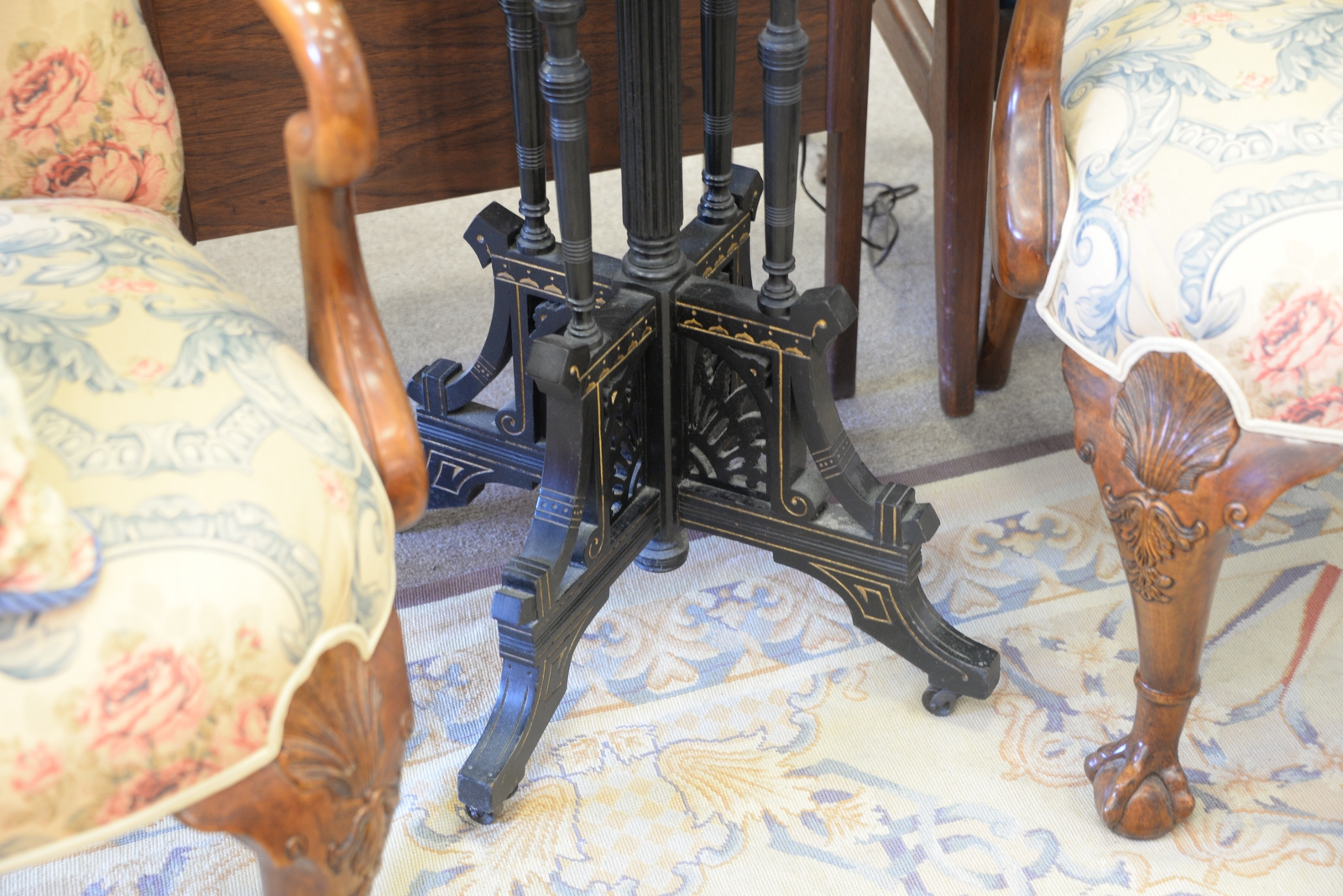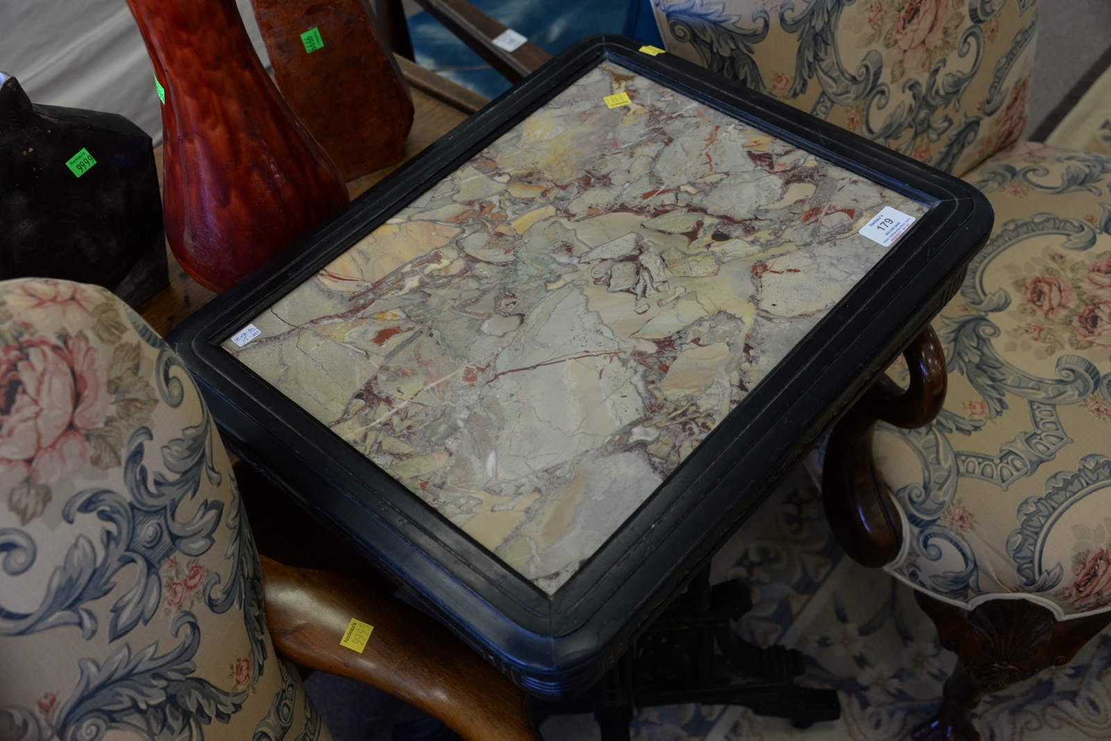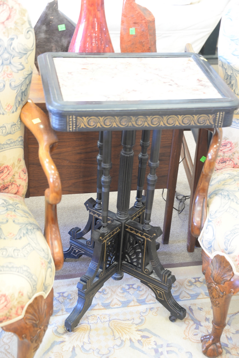 Victorian ebonized table with inset marble top. ht. 31in., top: 16 x 20