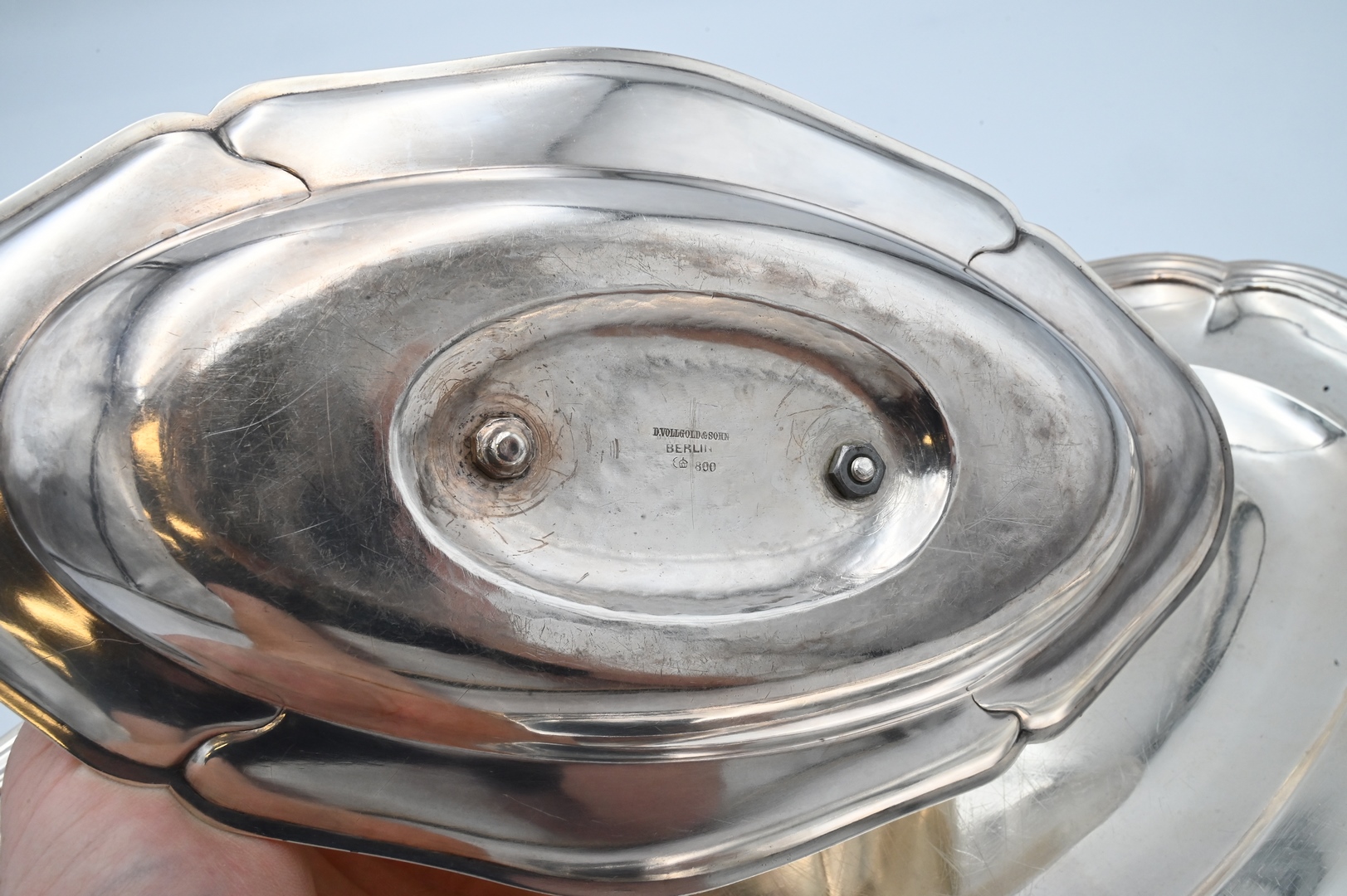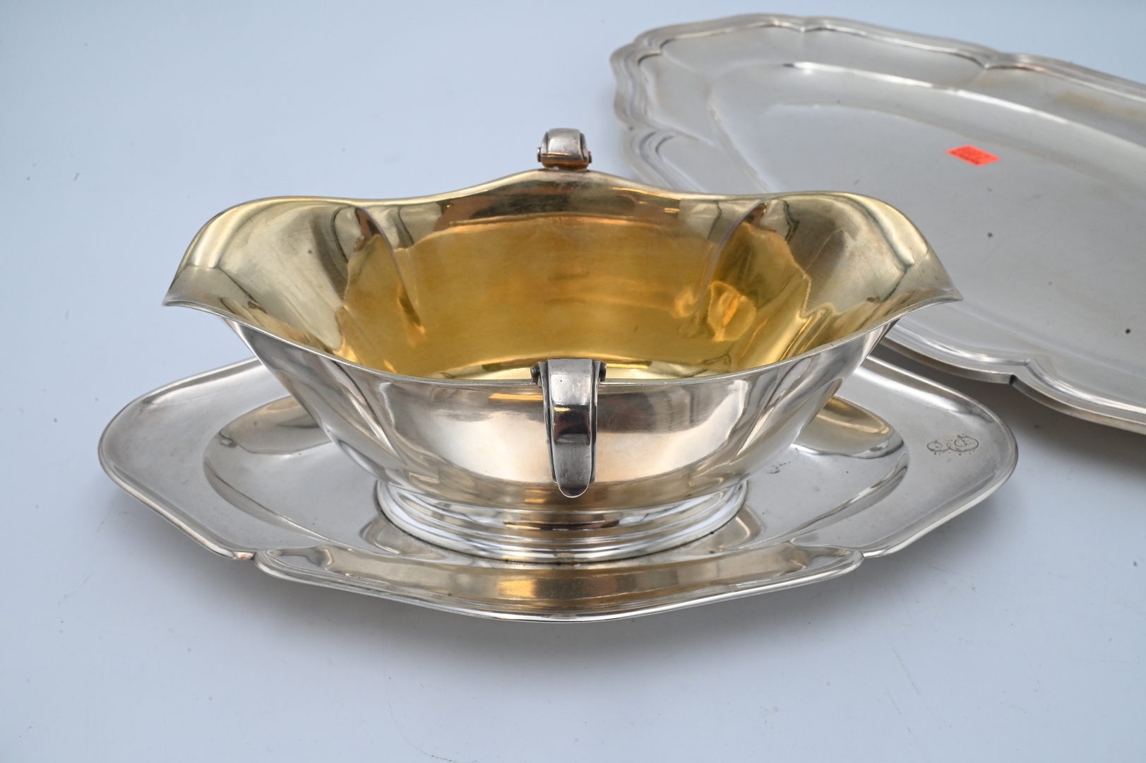 German Silver Two Piece Lot, to include a tray along with a gravy boat with underplate, D. Vollgold & Sohn, length 18 inches, 57 t.oz.