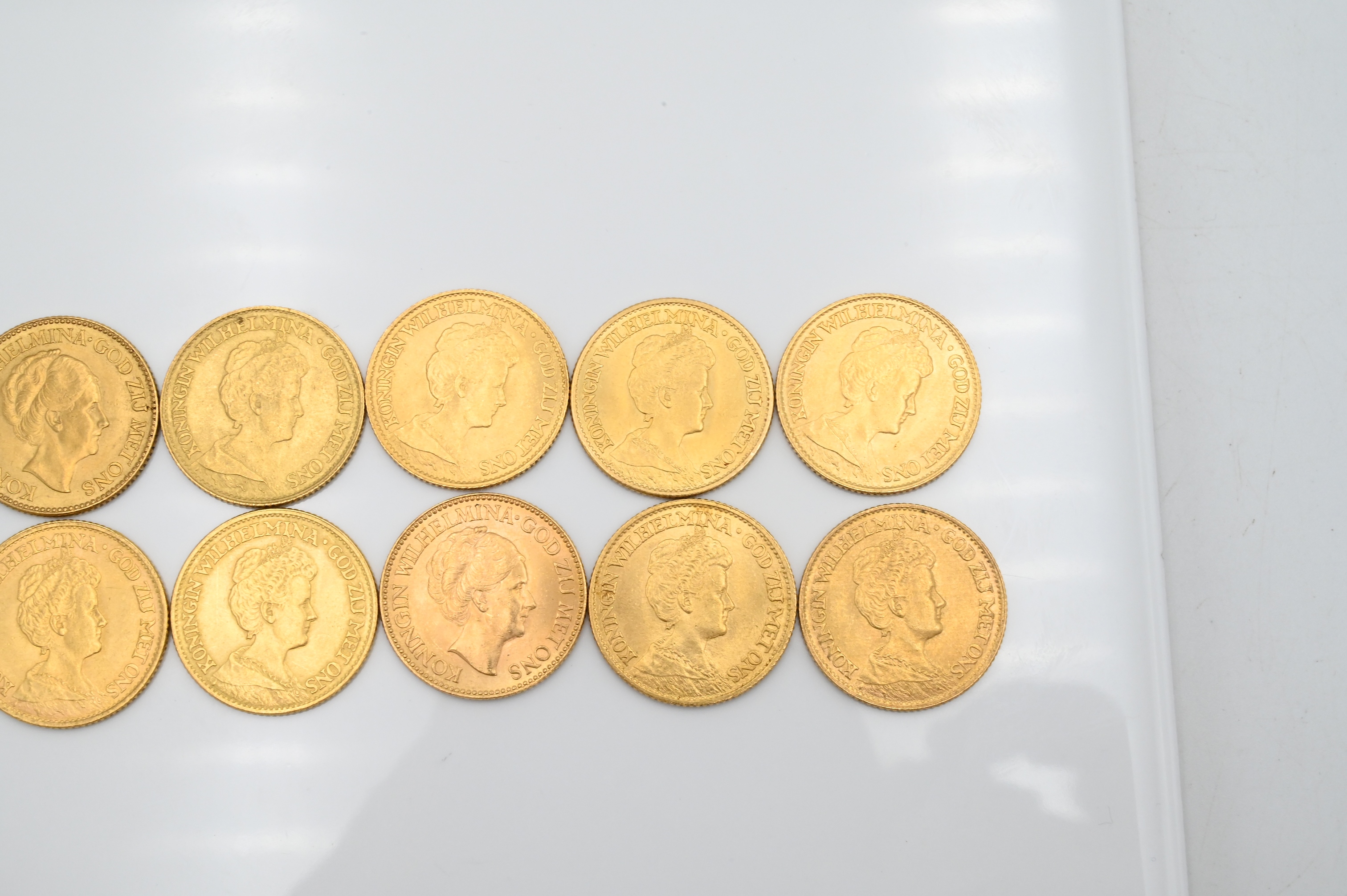 10 Dutch 10 Guilders Uncirculated Gold Coins, 67.2 grams