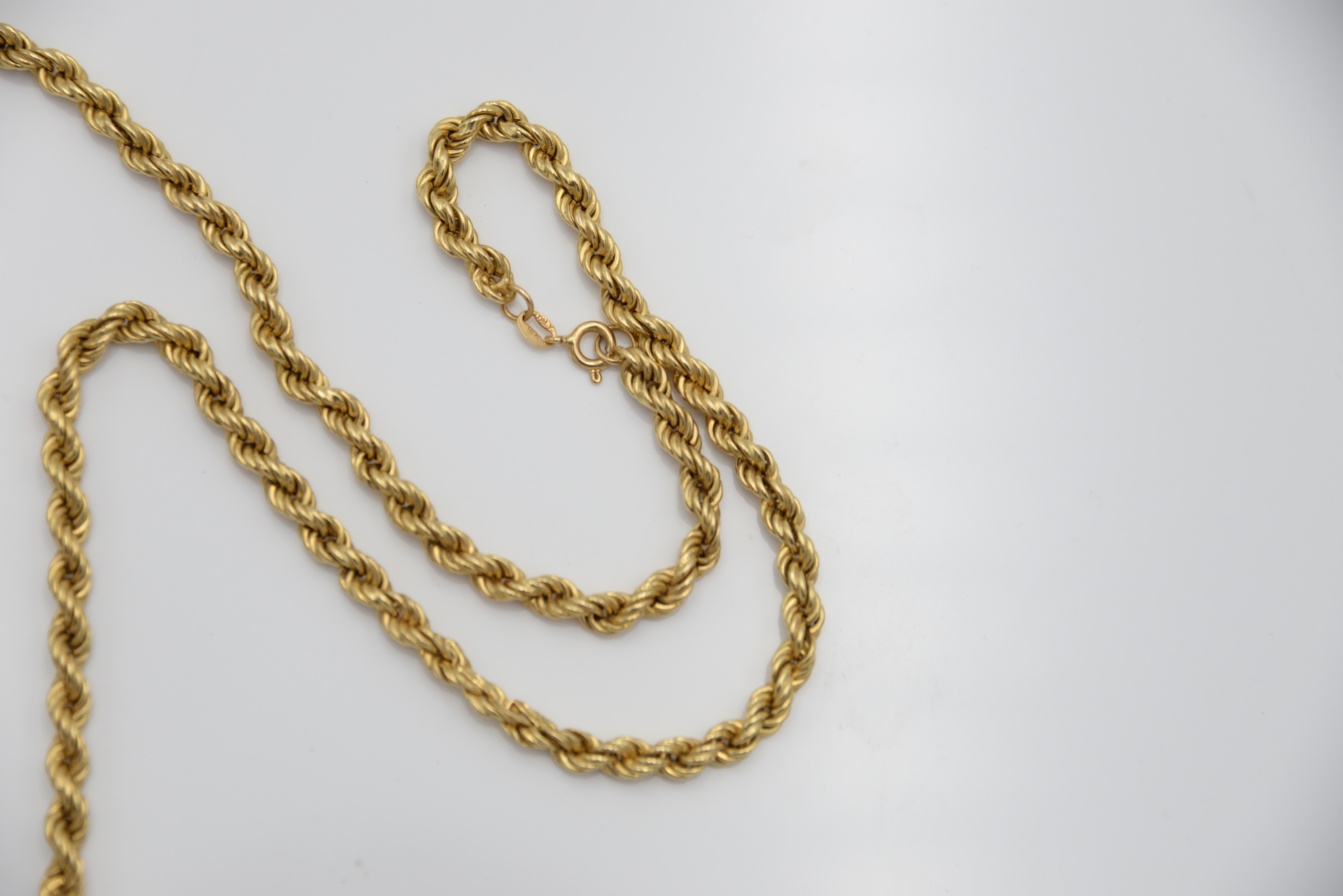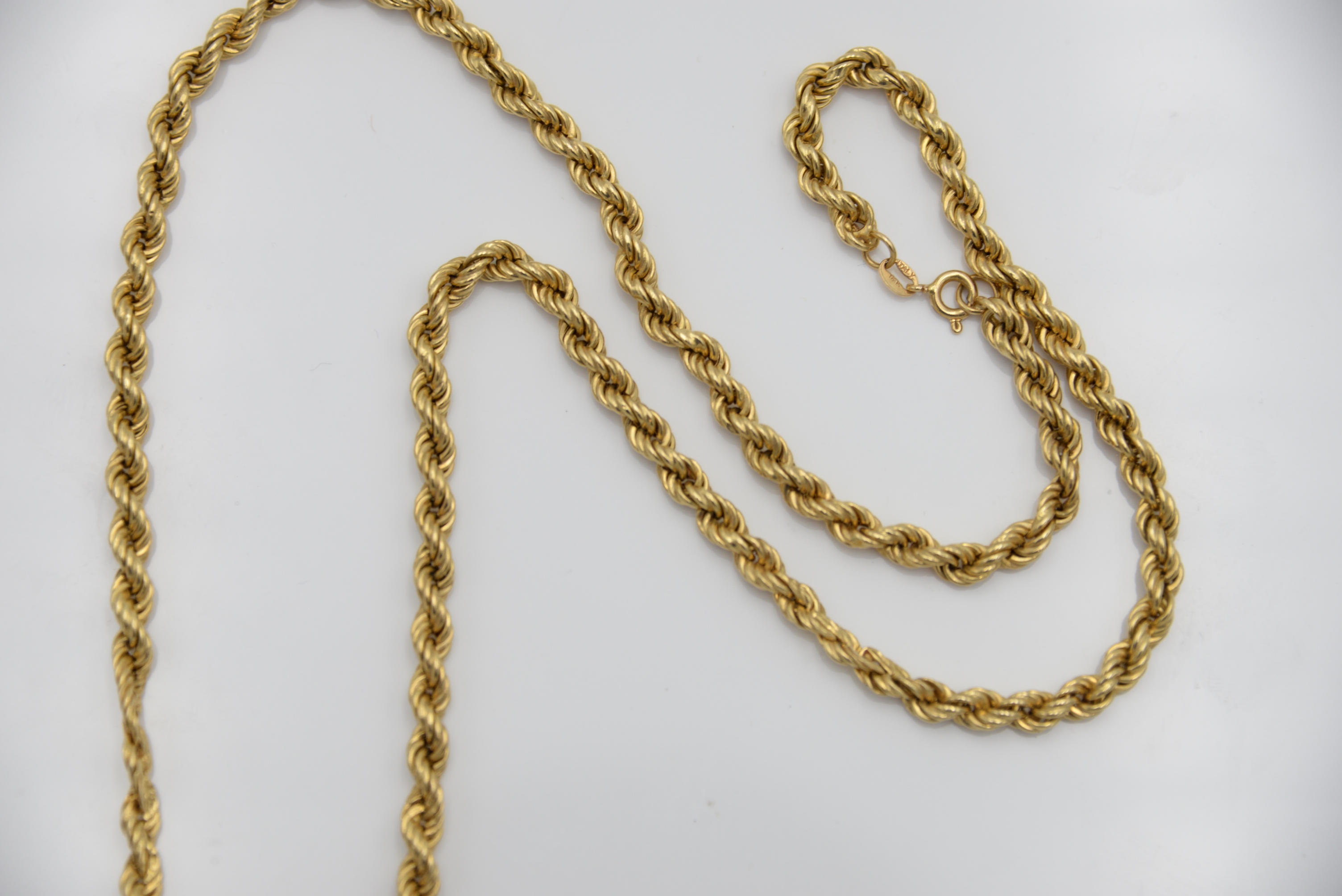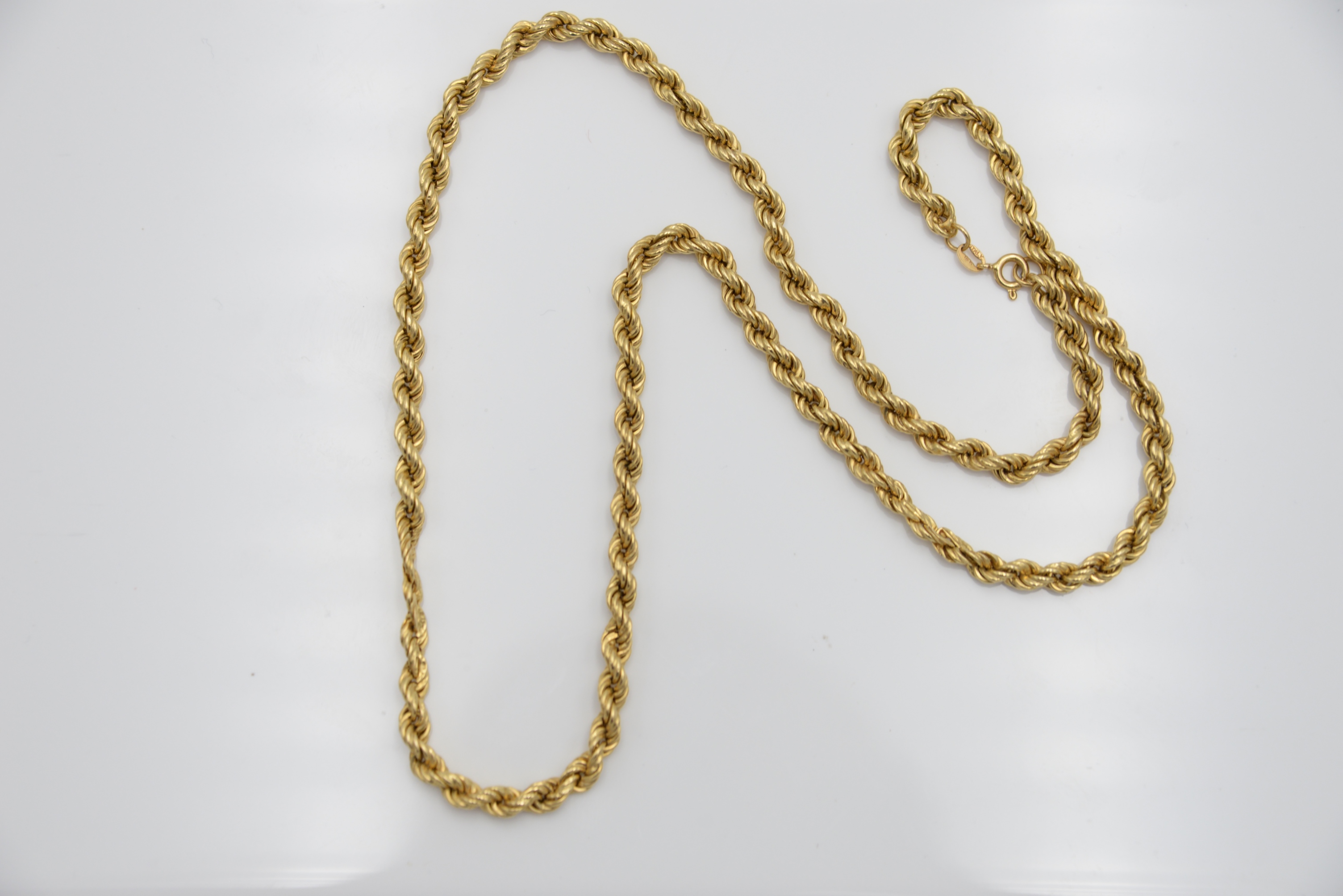 18 Karat Yellow Gold Necklace flat links wound with rope style links length 24 inches, 25.3 grams
