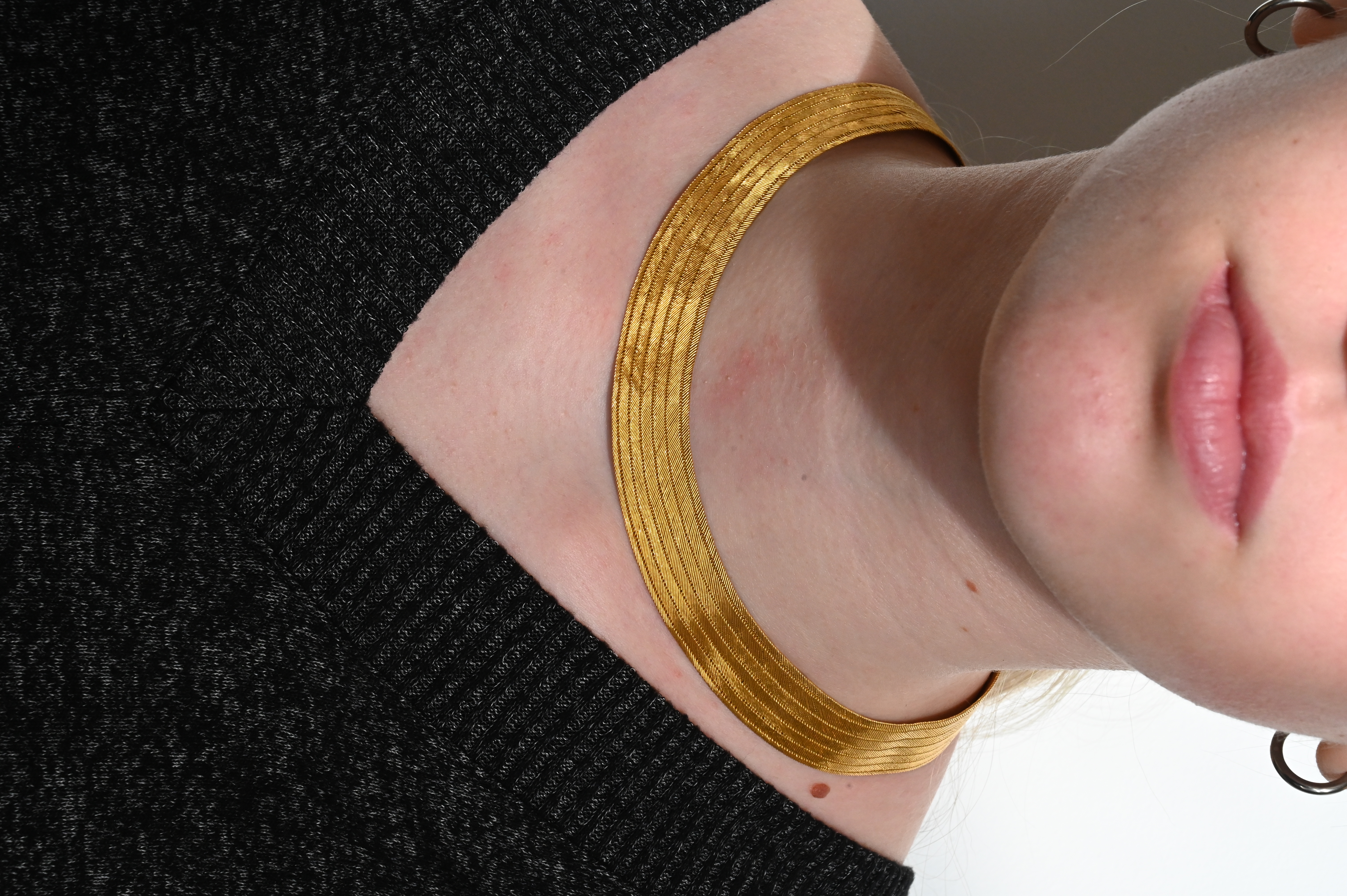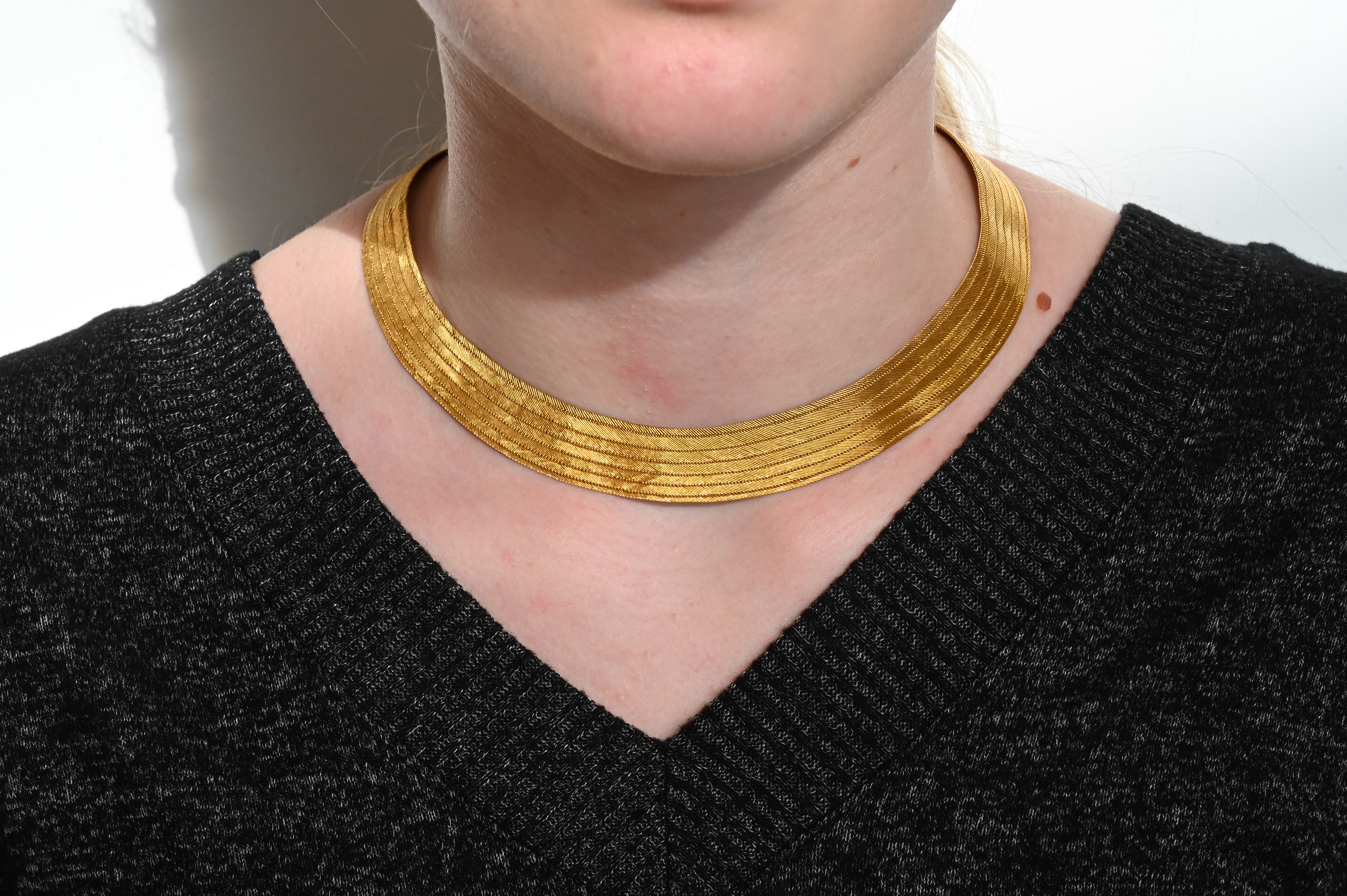 Lot 18: 22K Yellow Gold Flat Woven Necklace