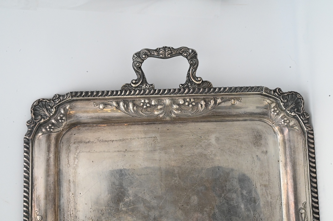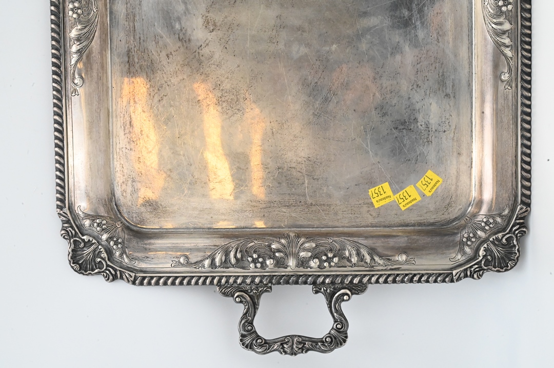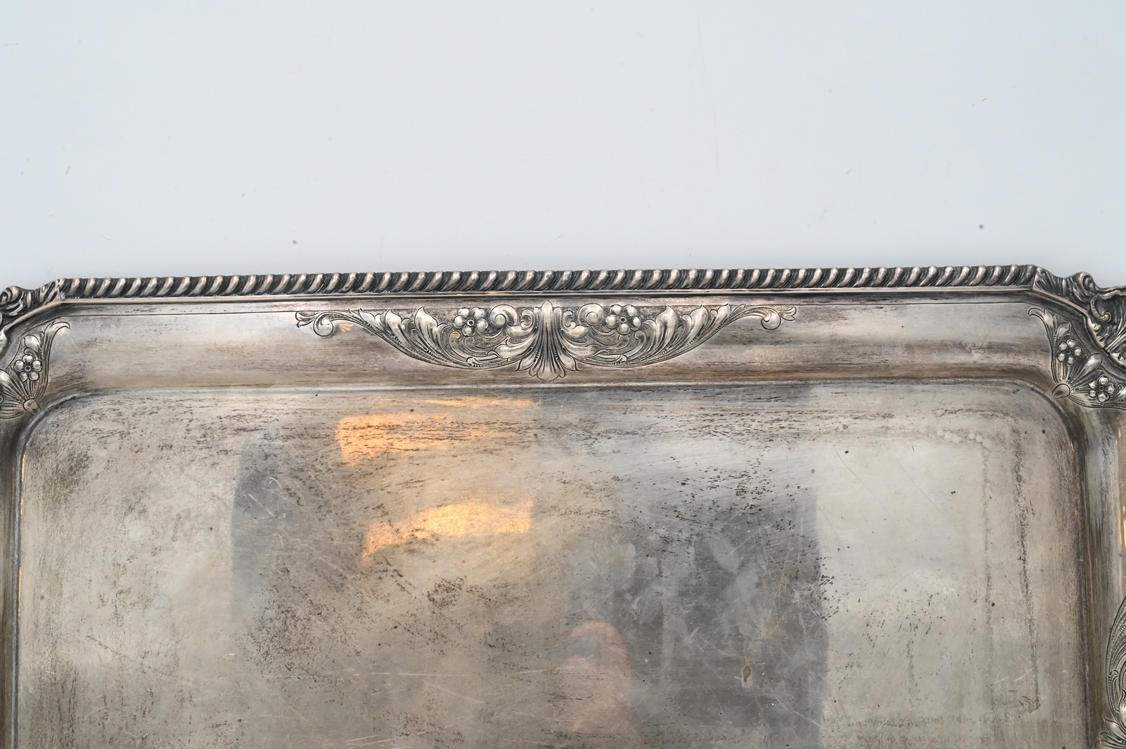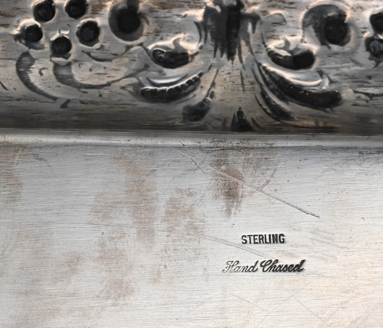 Durham Silver Company, hand chased sterling silver rectangular tray, 18″ x 29″, 139.7 t.oz.