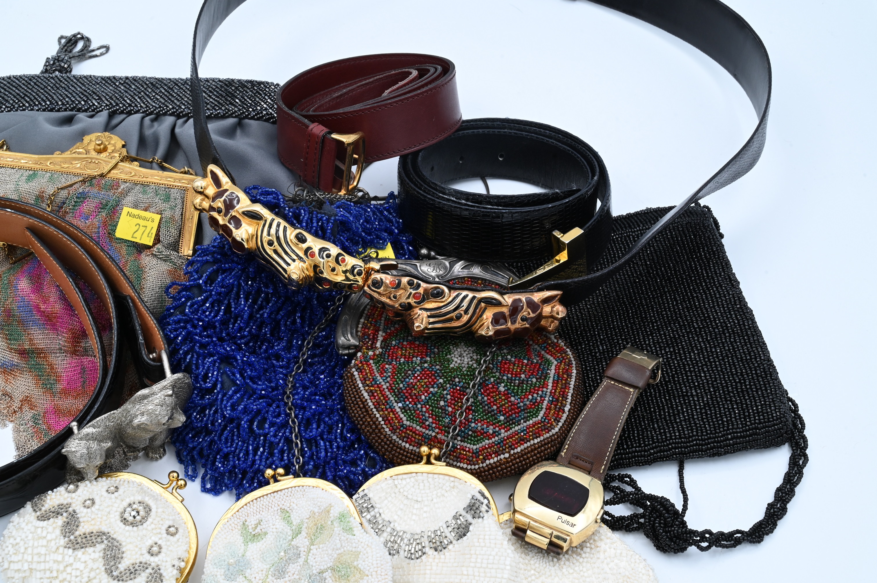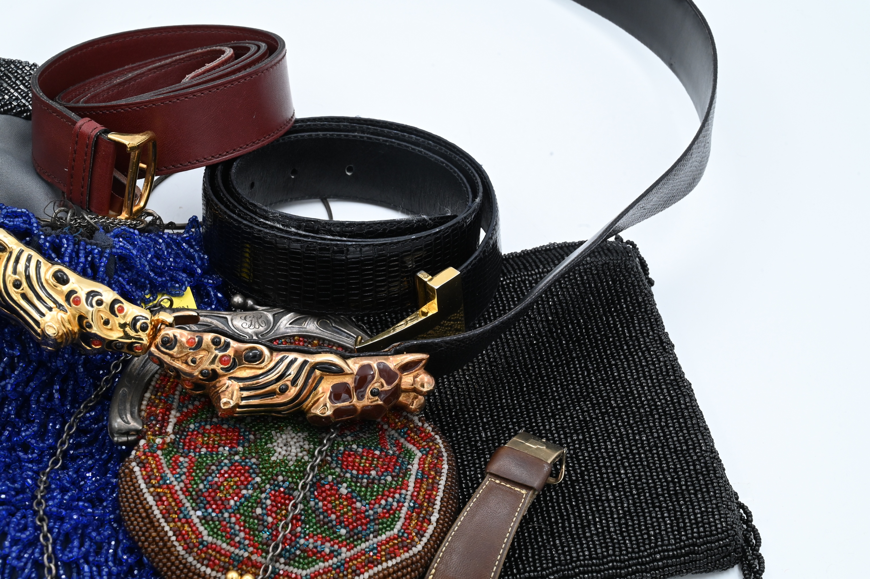 to include Judith Leiber giraffe, zebra, leopard belt buckle, Tiffany belt, Cartier belt, beaded purses, etcetera
