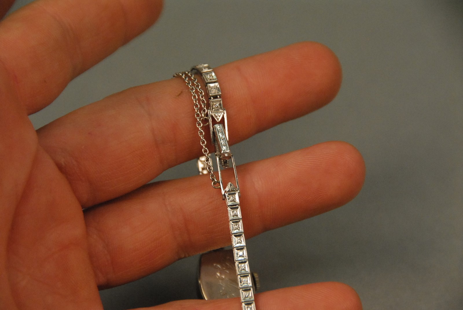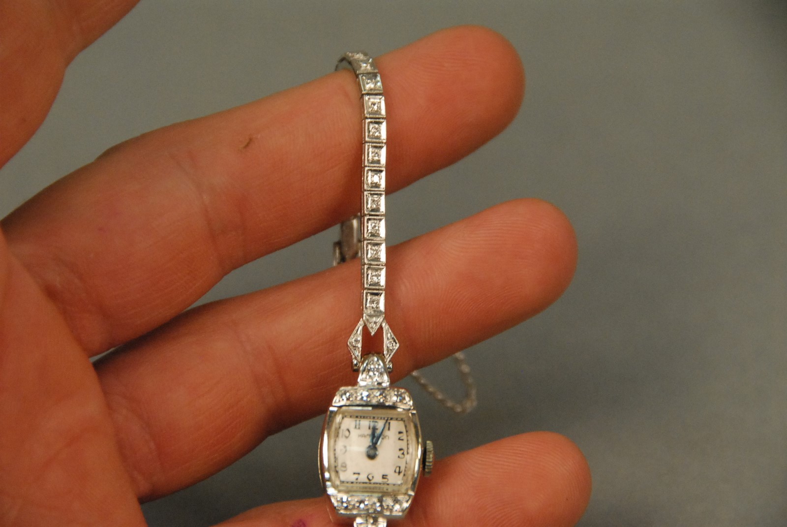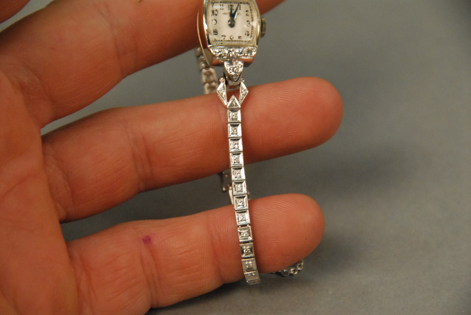 Hamilton 14K gold ladies wristwatch with platinum and diamond band. 18.7 total grams Provenance: Property from a Private Collection Sold for the Benefit of the Virginia Historical Society.