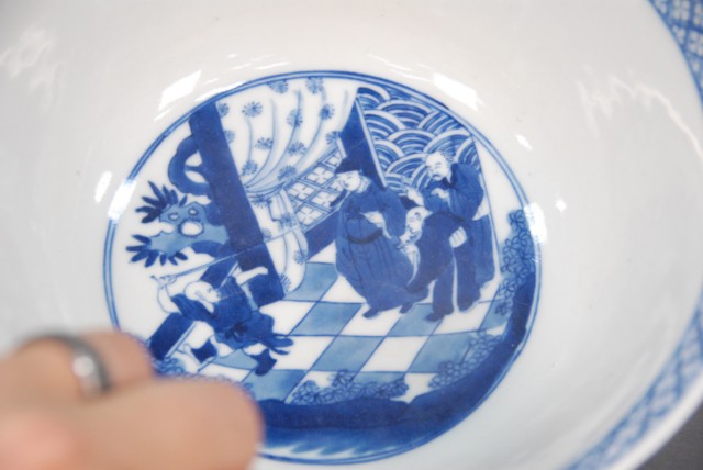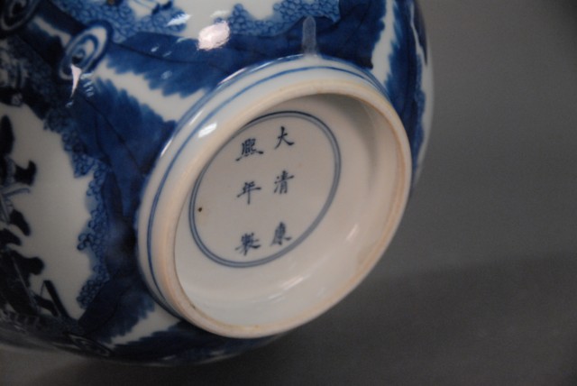 KangXi mark blue and white bowl with figures design, 17th Century.