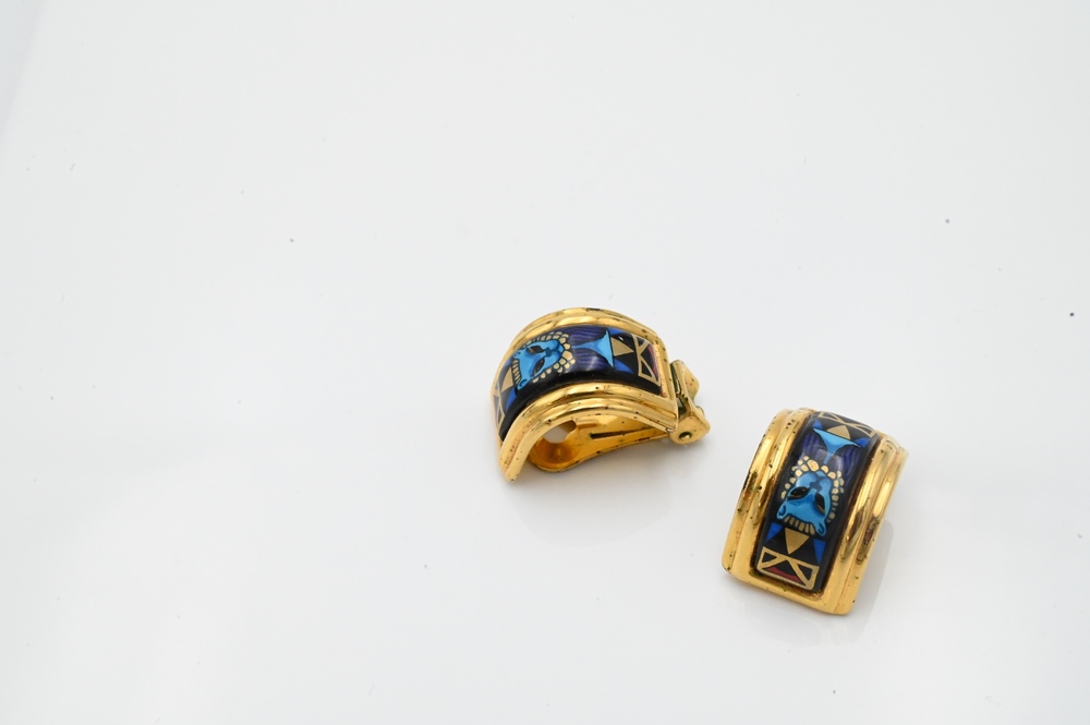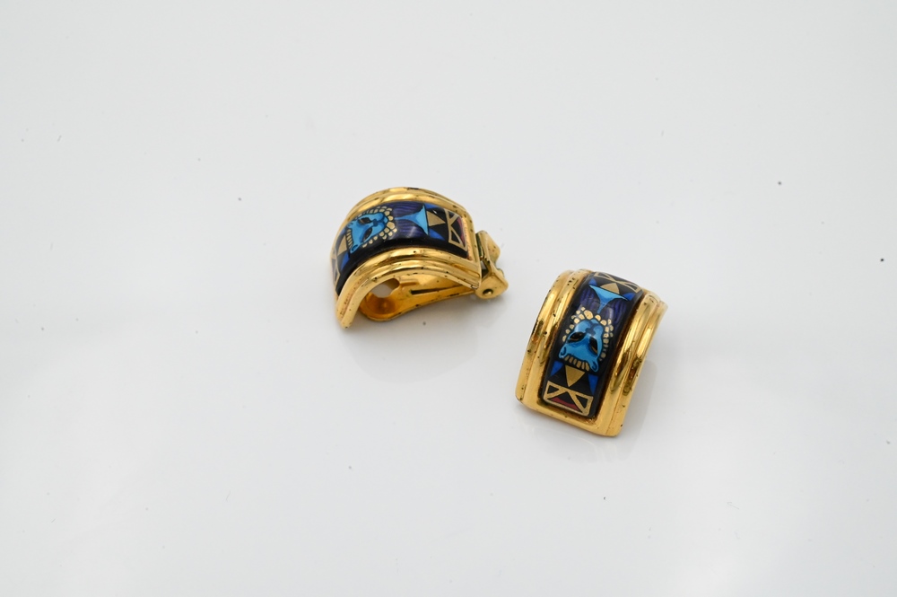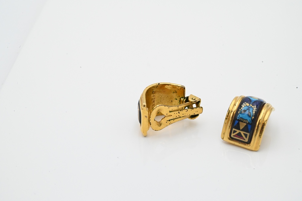 Lot 18: Pair of Hermes Enameled Ear Clips, marked Hermes.