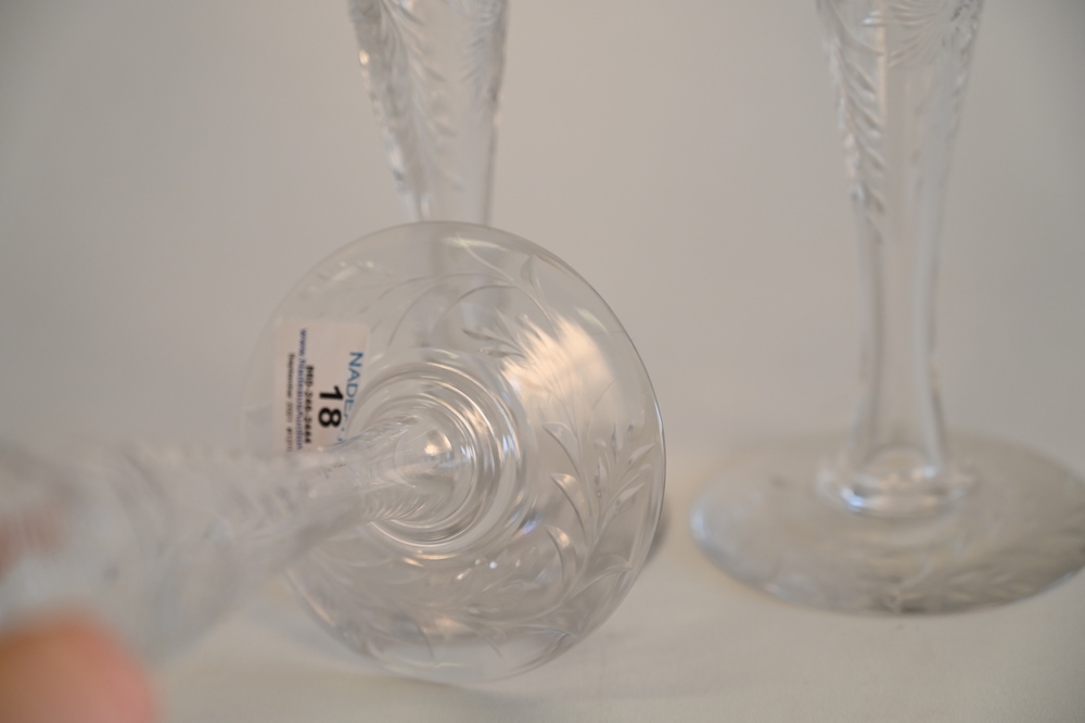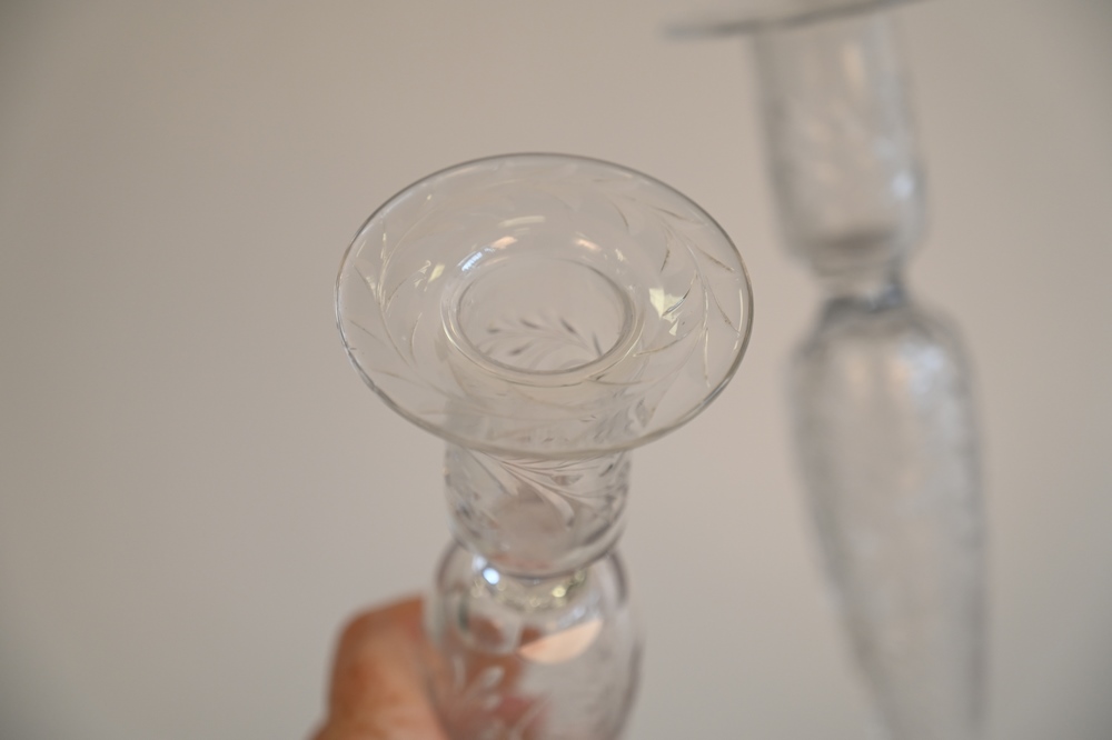 Lot 18: Set of Three Matching Hawkes Cut Glass Candlesticks, height 12 inches.