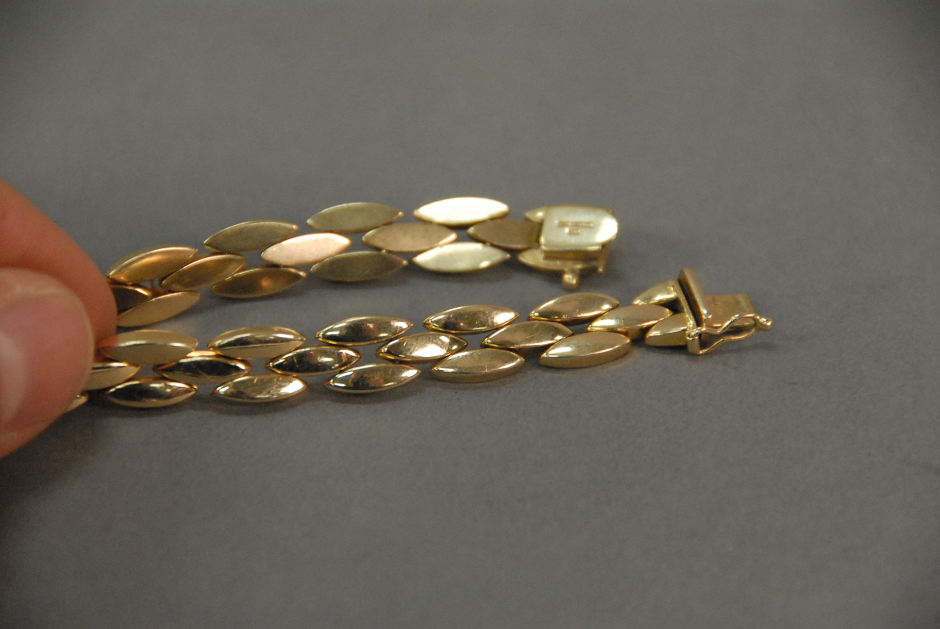 Tiffany 14K gold bracelet in original blue case and Tiffany box. 19.3 grams.