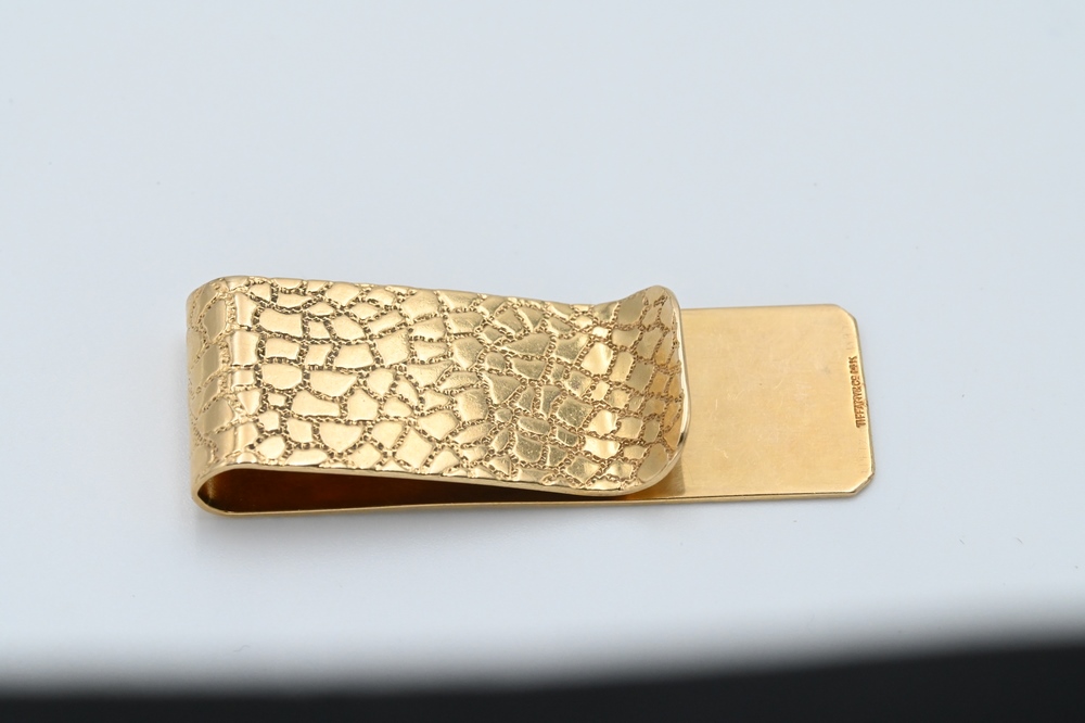 Lot 18: Tiffany & Company 14 Karat Gold Money Clip, having alligator style finish; 17 grams.