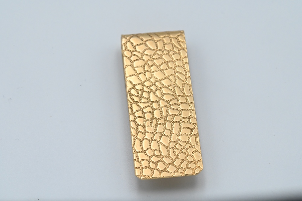 Tiffany & Company 14 Karat Gold Money Clip, having alligator style finish; 17 grams.