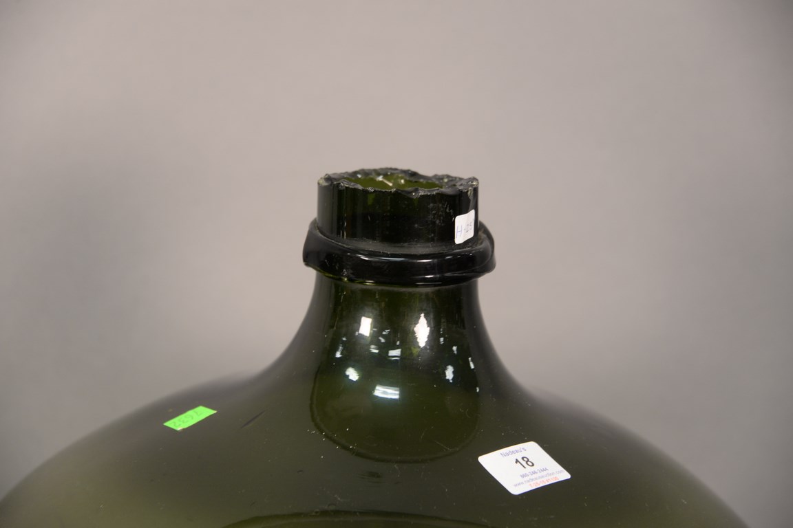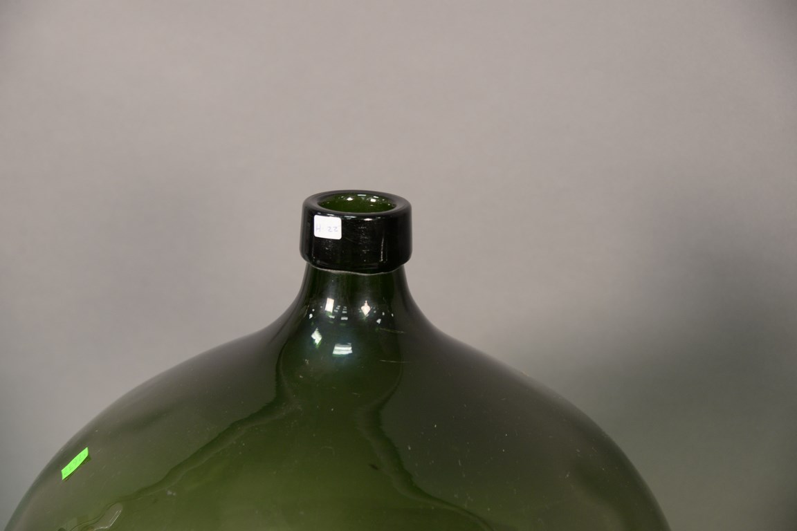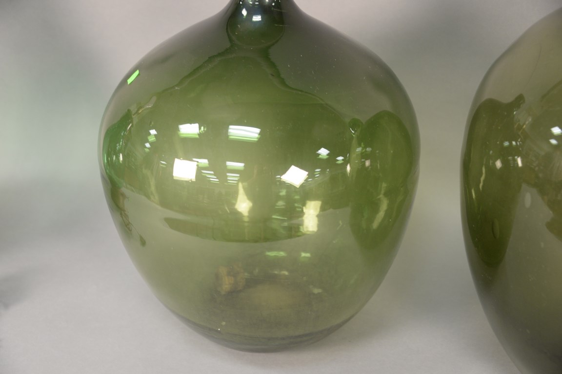 Two large green early bottles, ht. 22 in. & ht. 25 in.