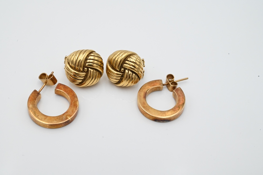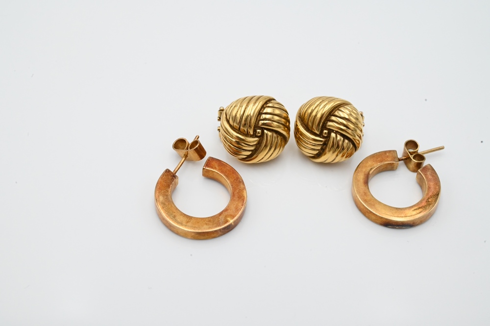 Two Pairs of 18 Karat Gold Pierced Earrings, 14.9 grams.