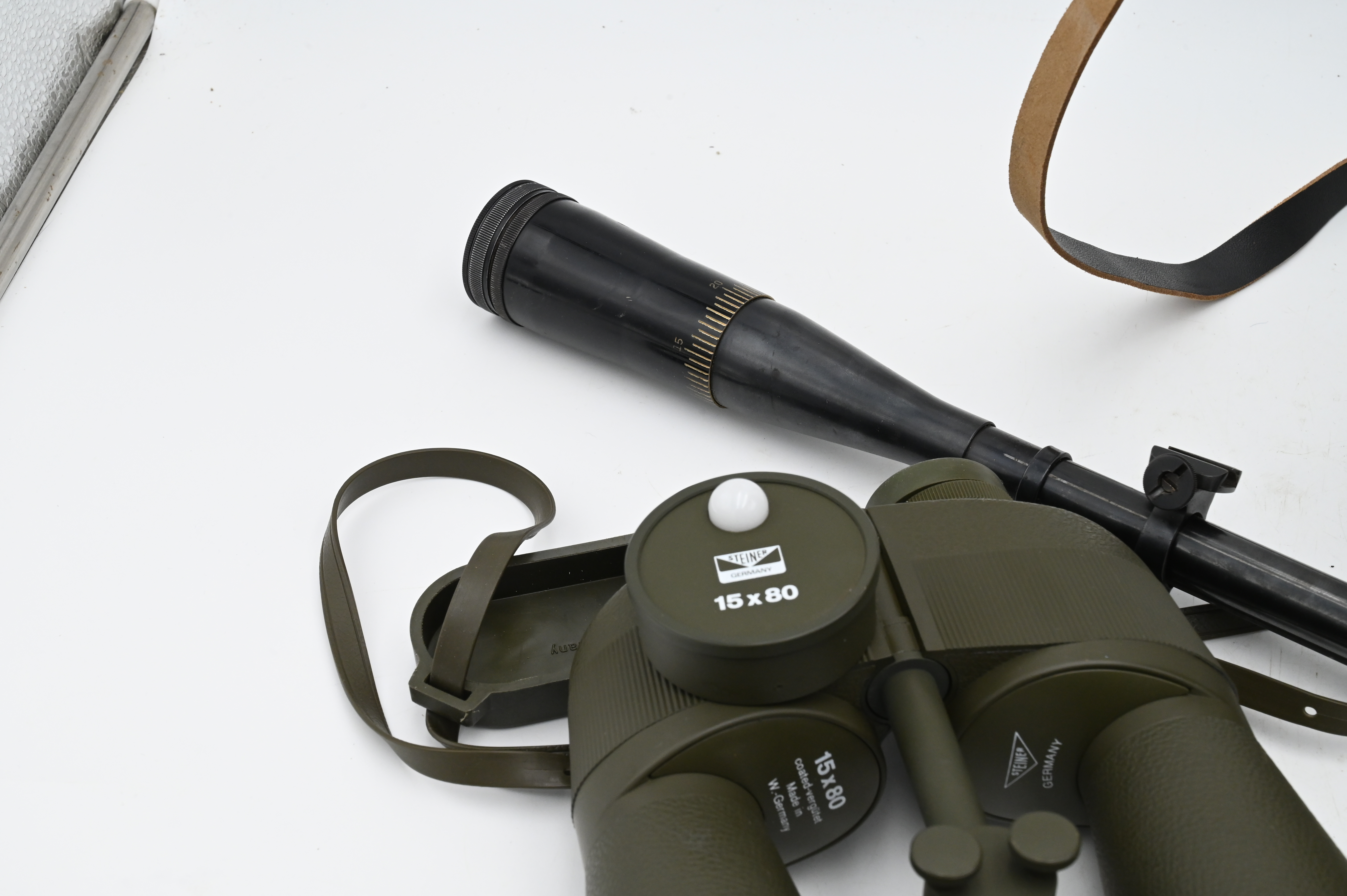 Two Piece Hunting Lot, to include a 12 power rifle scope, along with large Steiner German 15×80 binoculars.