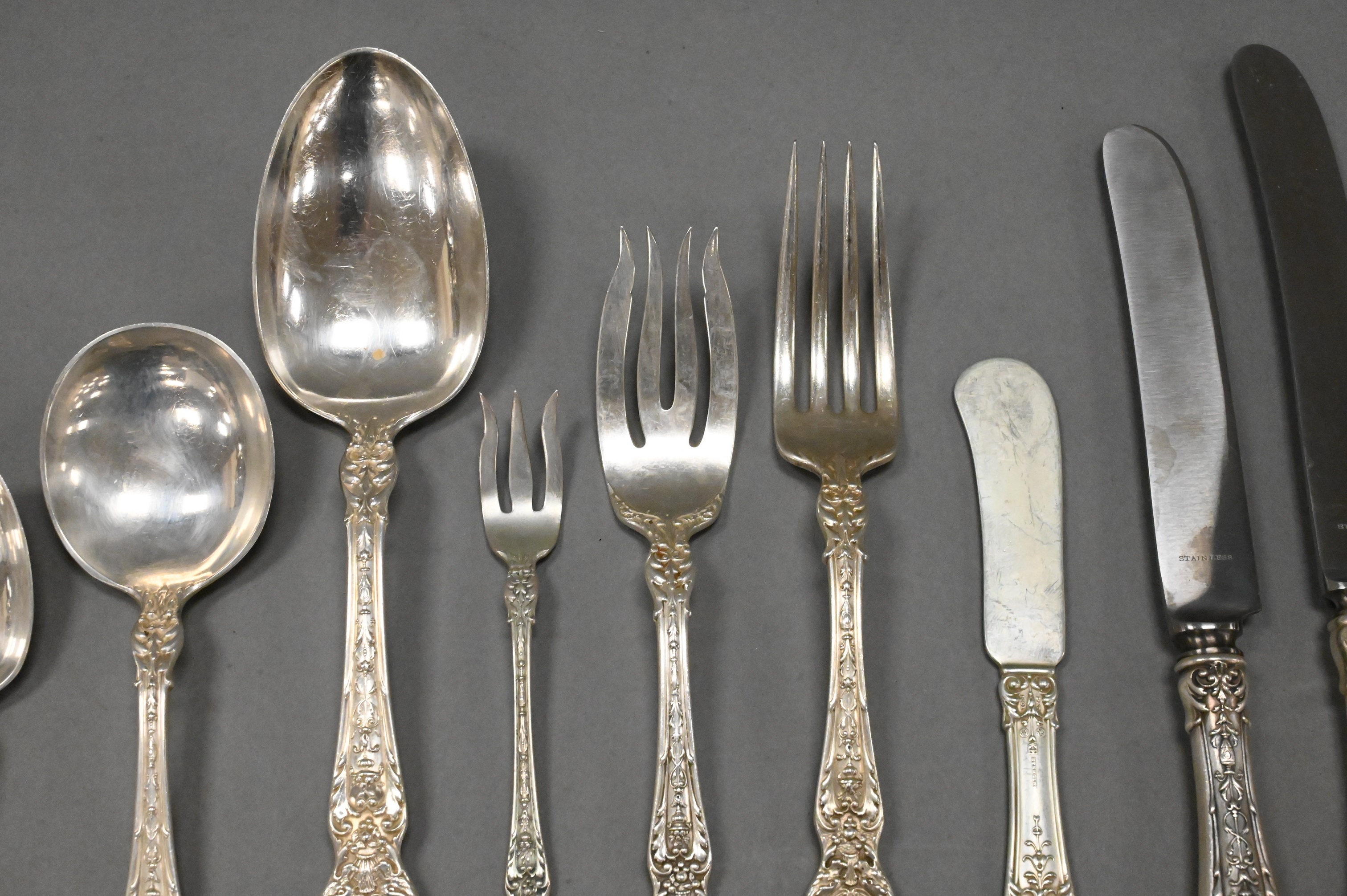 Lot 180: 134 Piece Gorham Sterling Silver Flatware Set in Florentine-Floronz Pattern