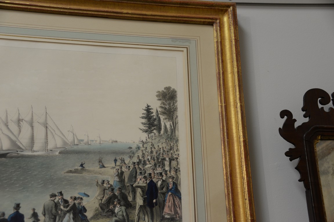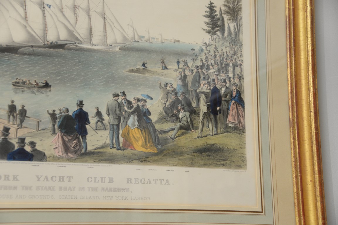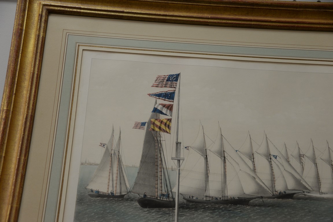 Lot 180: Currier & Ives large folio hand colored lithograph The New York Yacht Club Regatta The Start from the Stake Boat in the N…