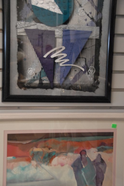 Lot 180: Group of four framed contemporary pieces of artwork including H. Wong, M. Stallers Graphics III, and Vilway Vail, 8 x 7 to 19 …