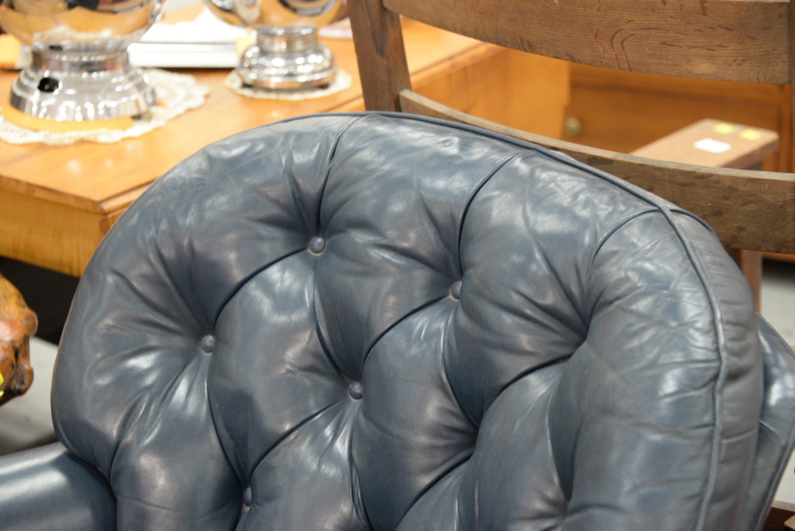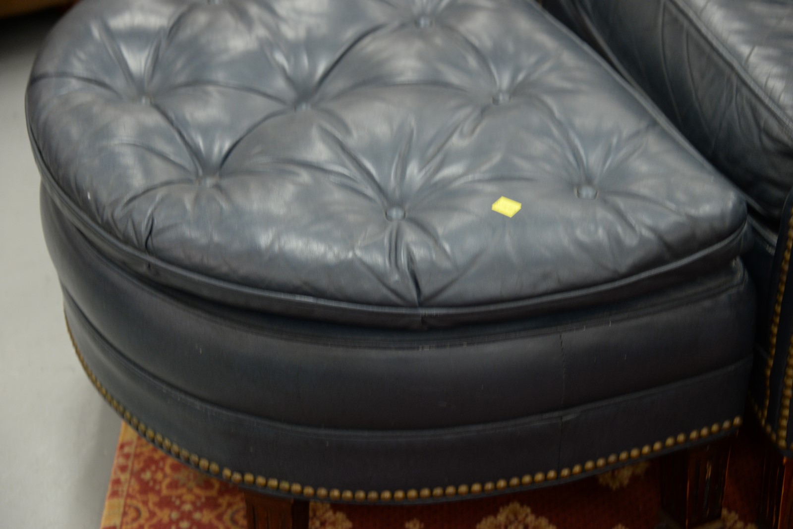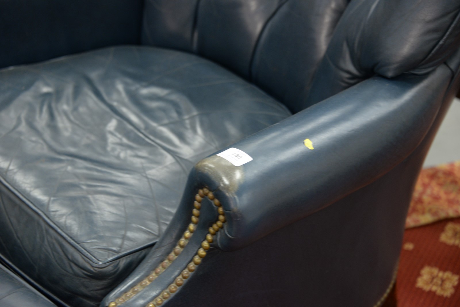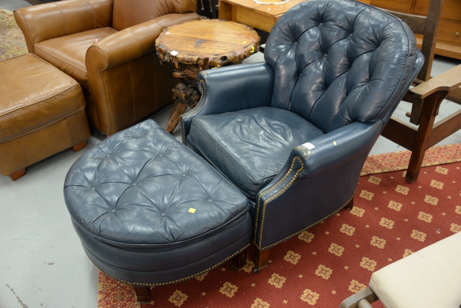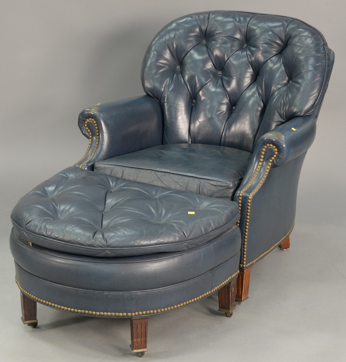 Hancock and Moore leather easy chair and footstool footstool tear in front leather.