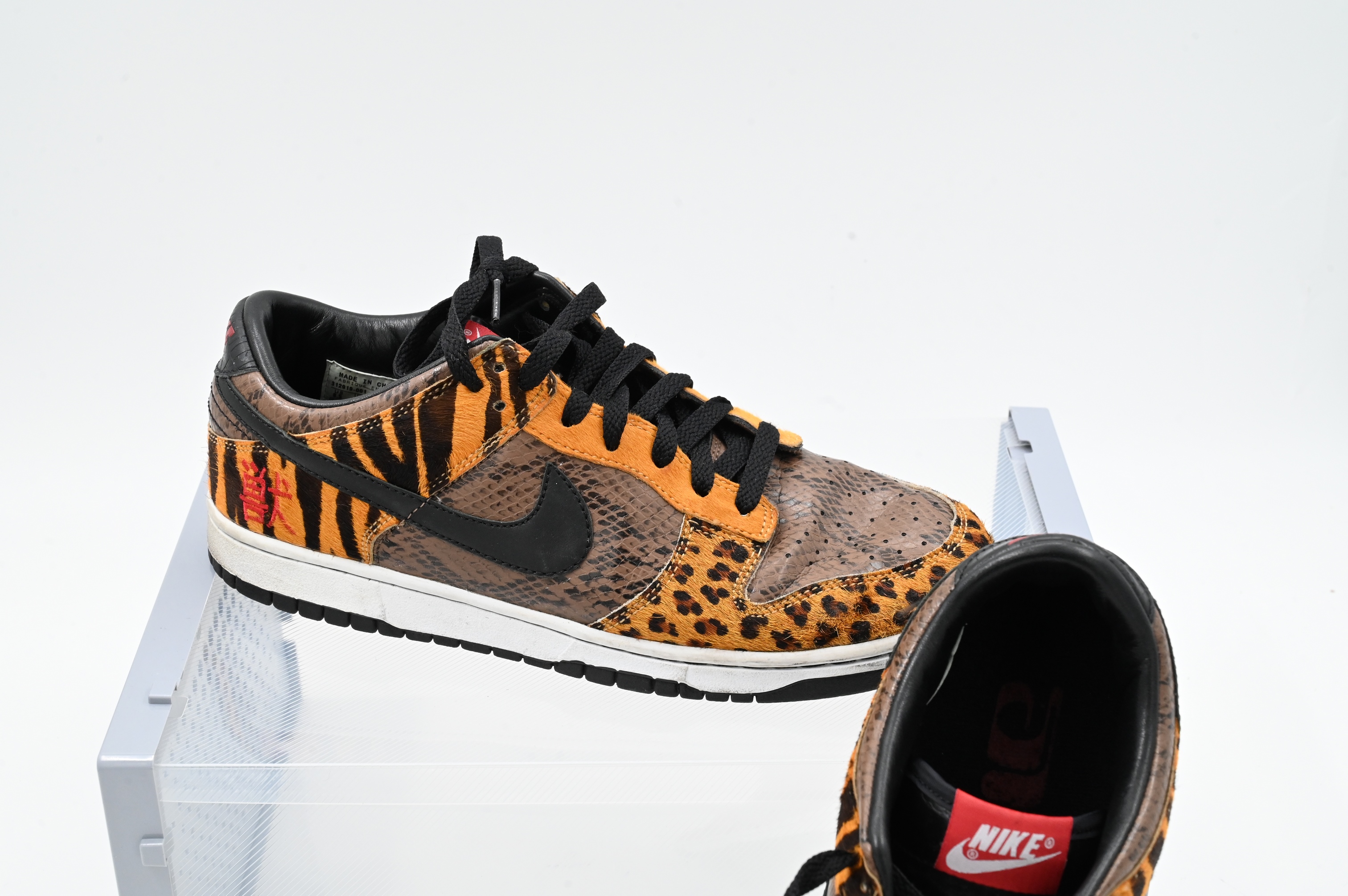 Lot 180: Men’s Nike Sneakers Dunk Low Beast Pack in Tiger, Leopard, and Snake Print