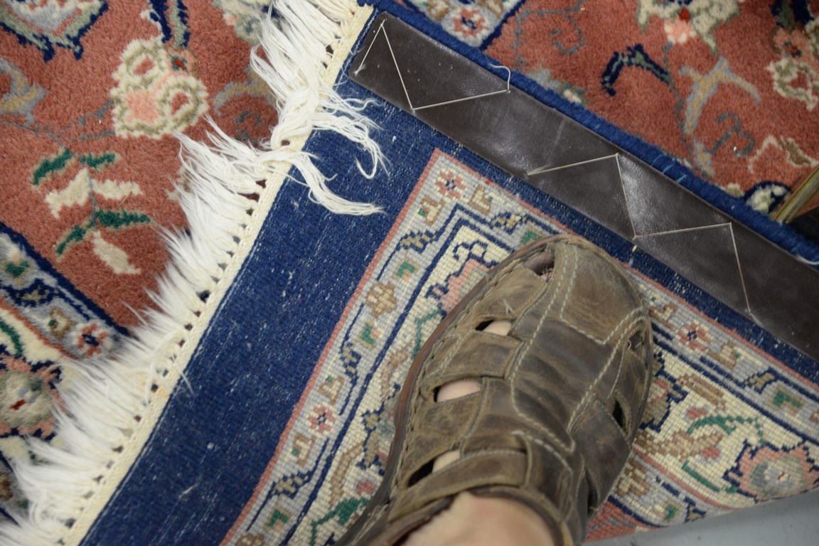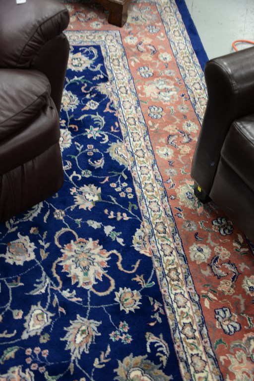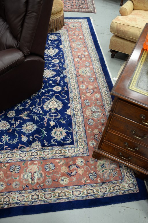 Oriental room size rug with dark blue ground, 9’4 x 14′.