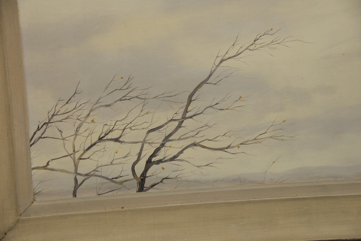 Lot 180: Robert R. Bliss 1925-1981, oil on masonite, Windy Winter Tree, signed lower right: R. Bliss 53. 11 3/4 x 30 Provenance: Estate o…