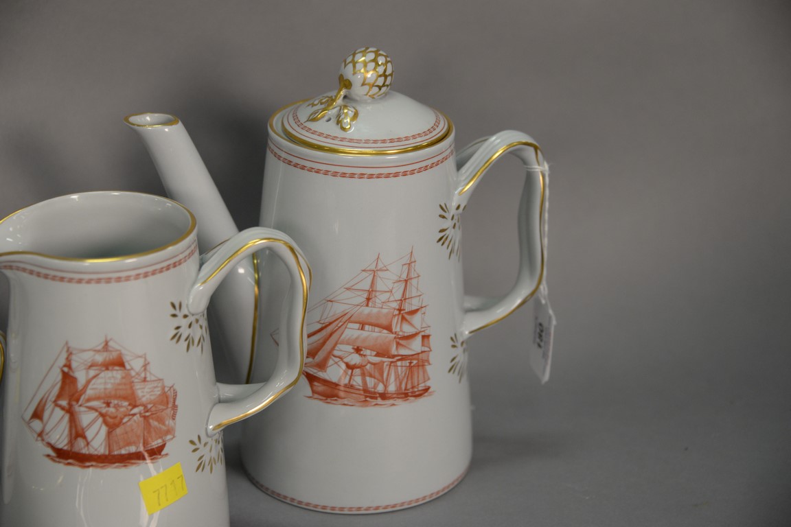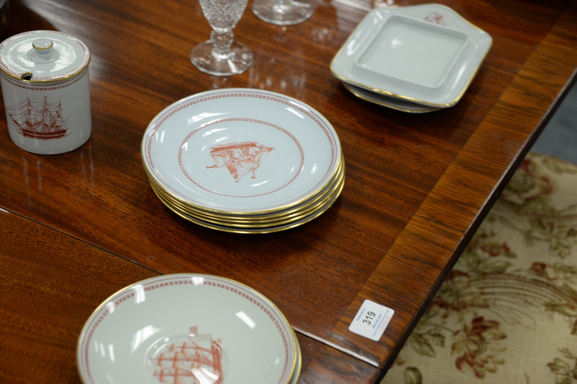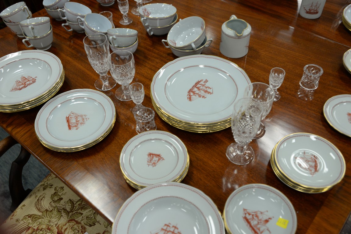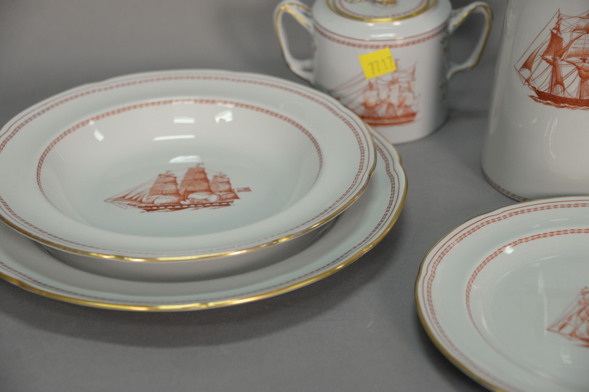 Spode Trade Winds red W128 dinnerware set, 74 total pieces.