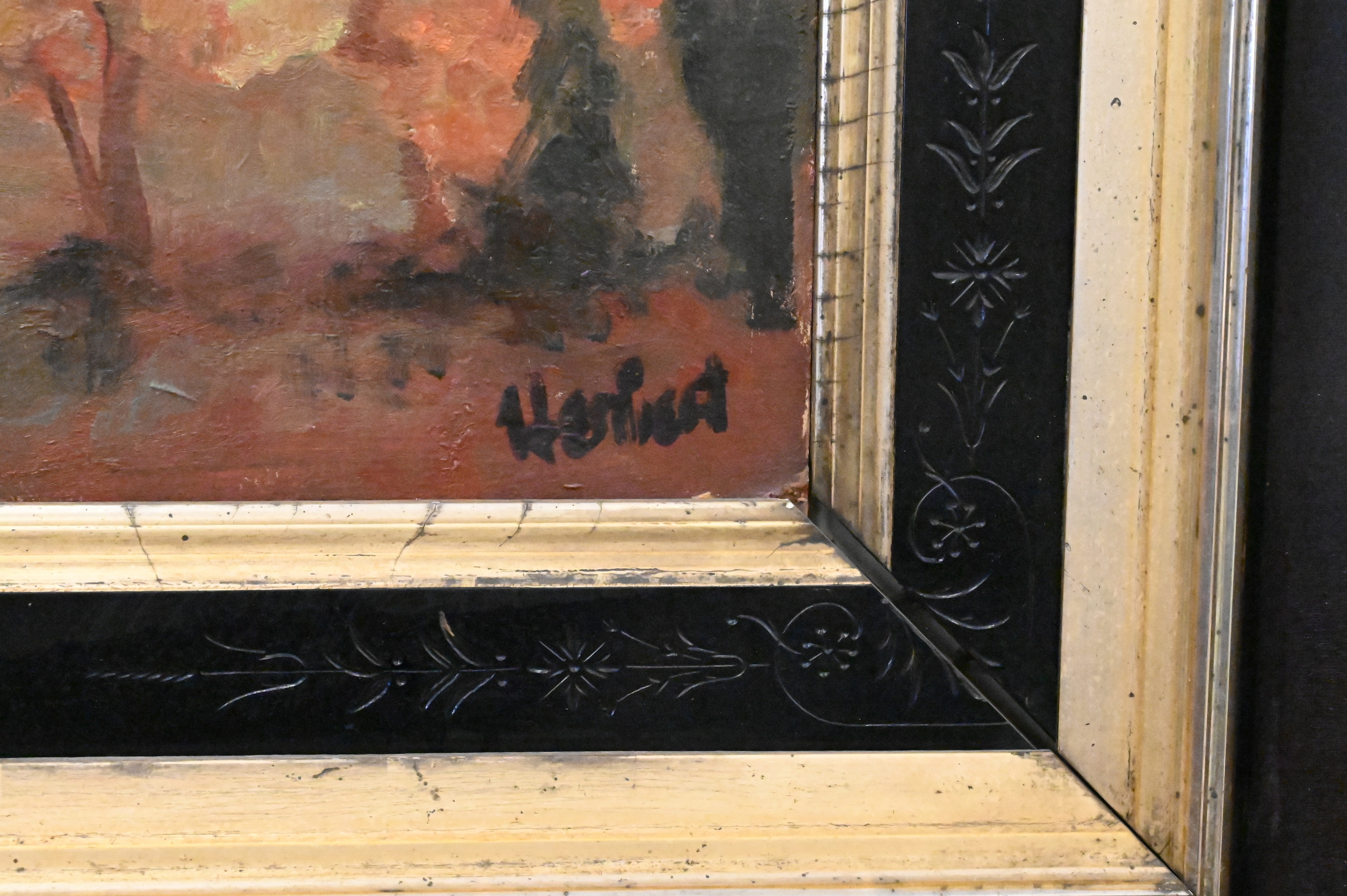 Oil on board, in large carved frame