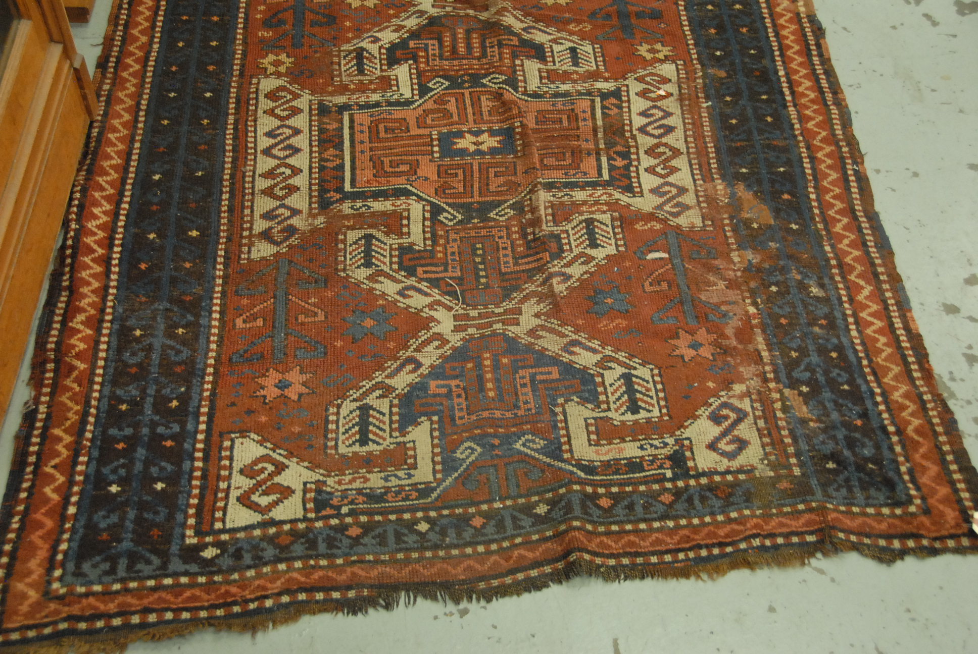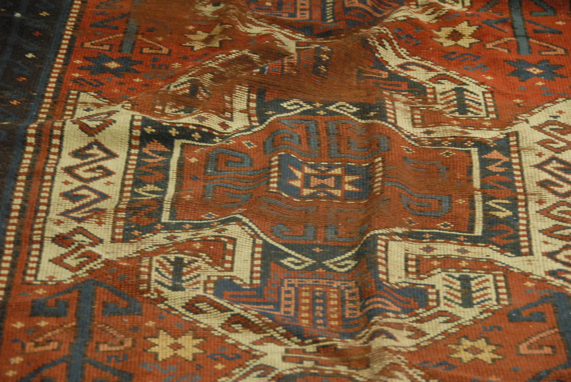 Caucasian Oriental runner, worn, 4’1 x 9’6.