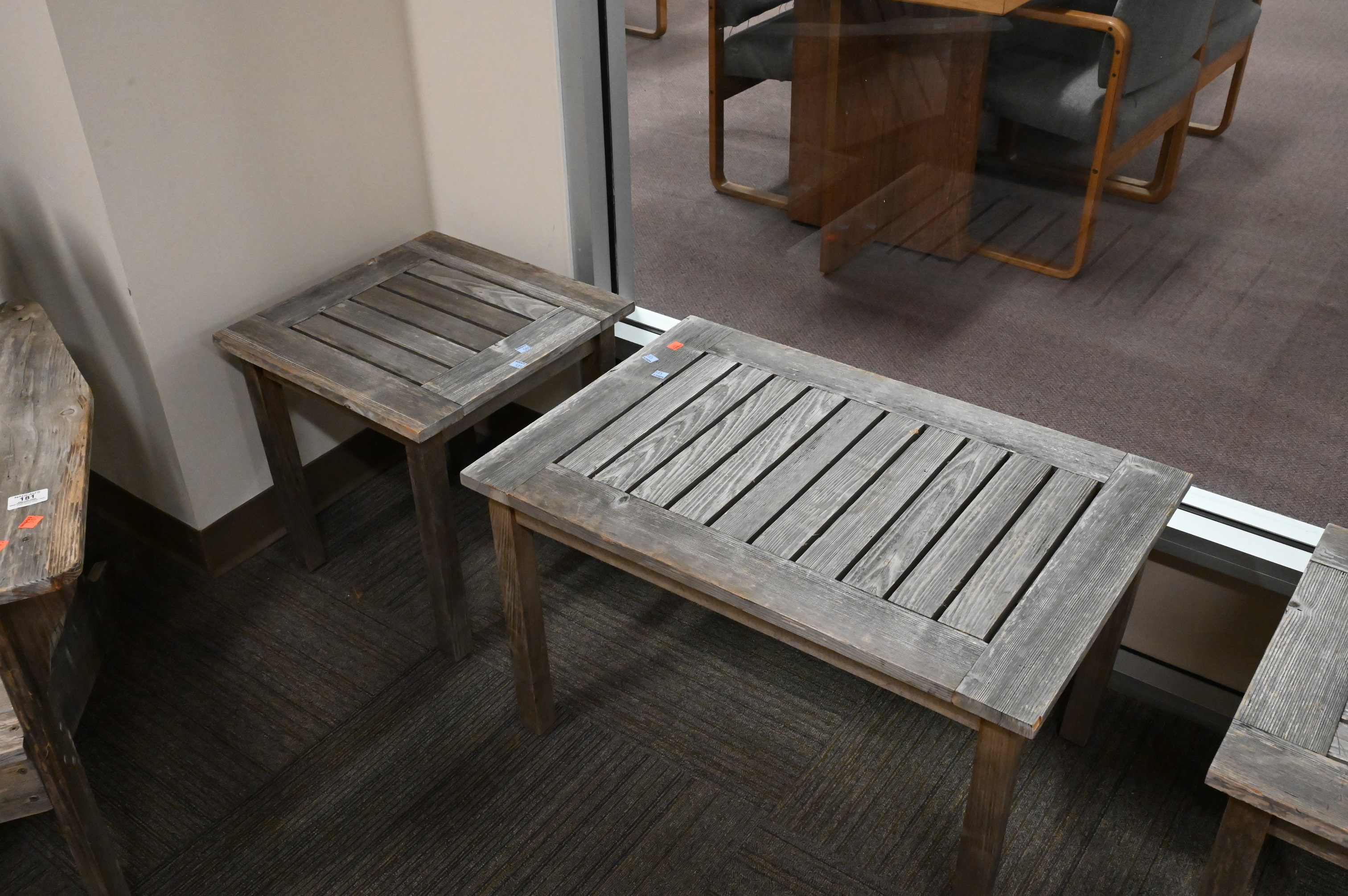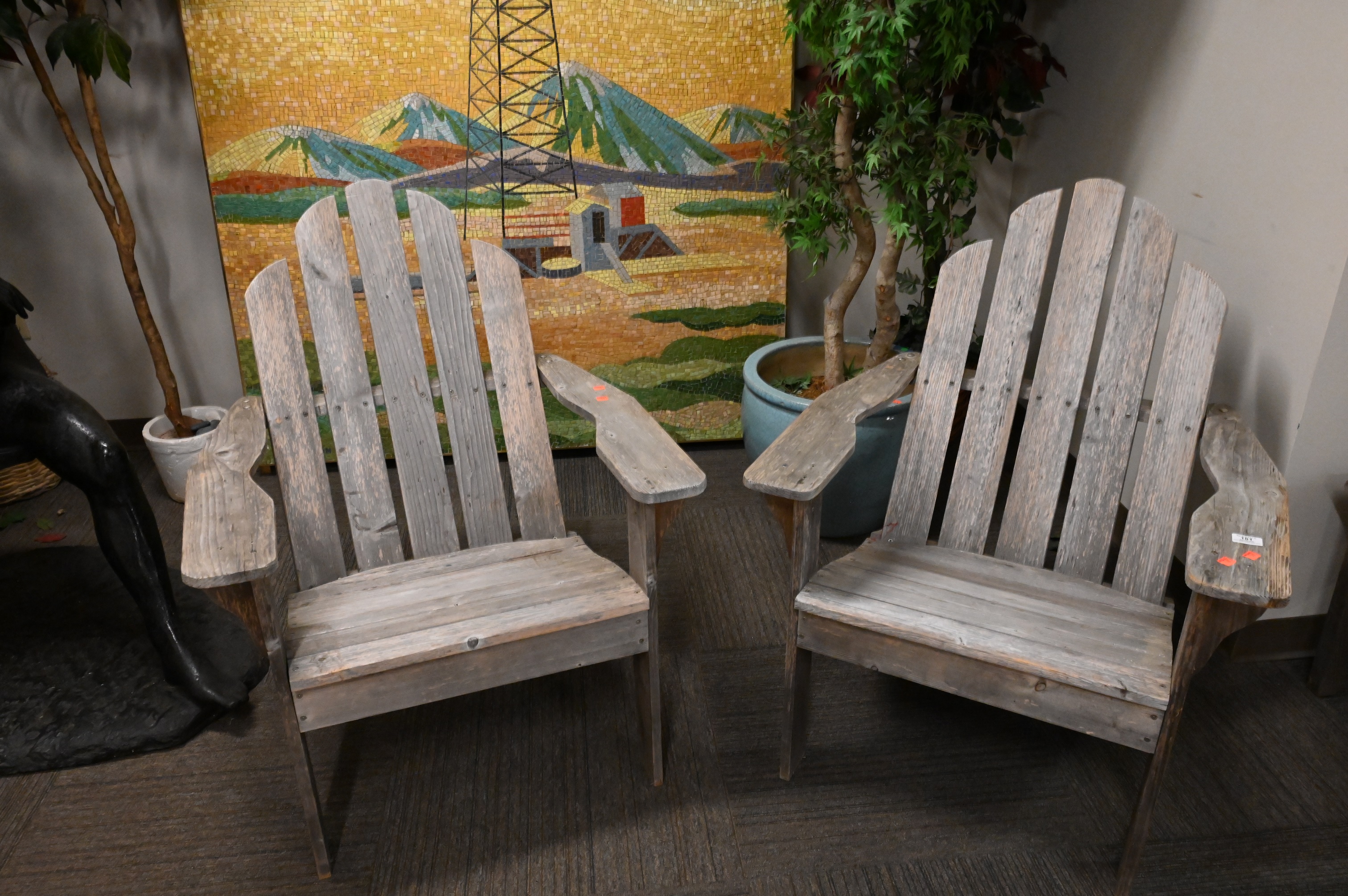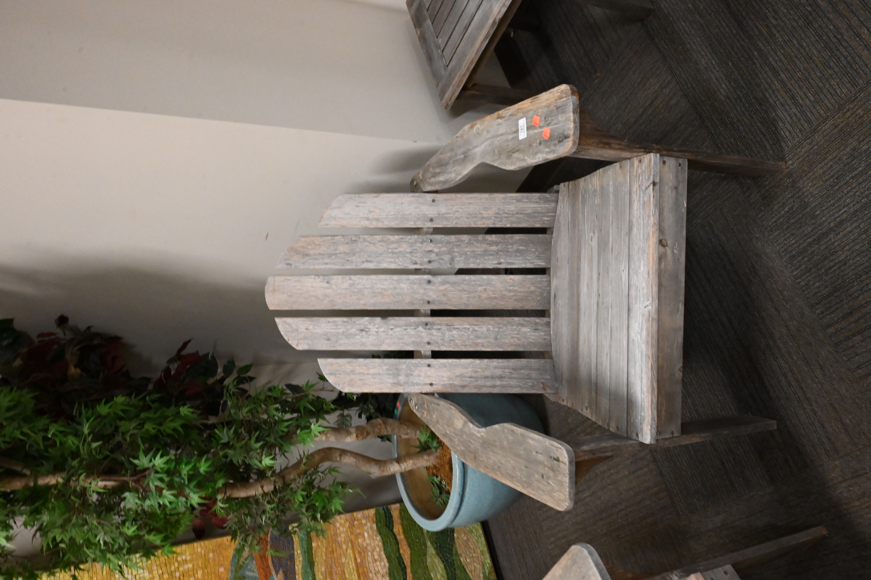 to include two adirondack style armchairs and three small tables