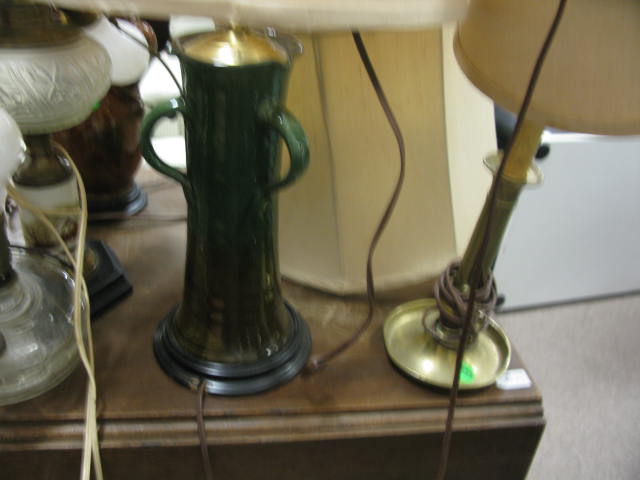 Group of eight lamps including a whale oil lamp