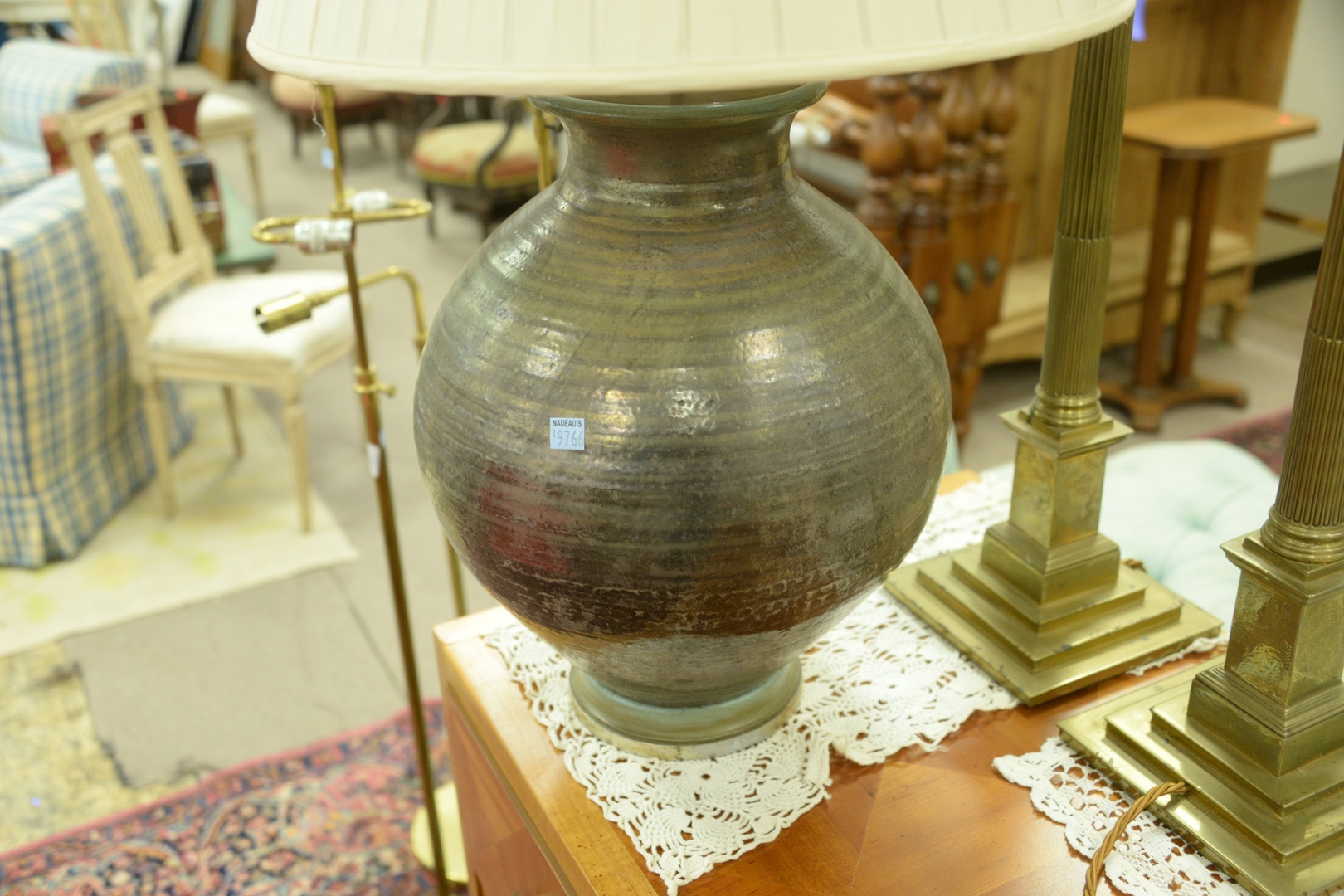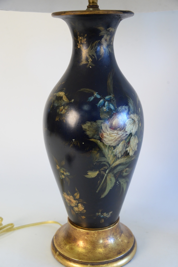 Lot 181: Group of Five Table Lamps, to include pair of papier mache table lamps, with painted flowers as is, height 29 inches a large cera…