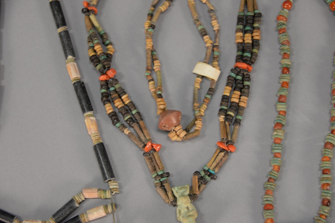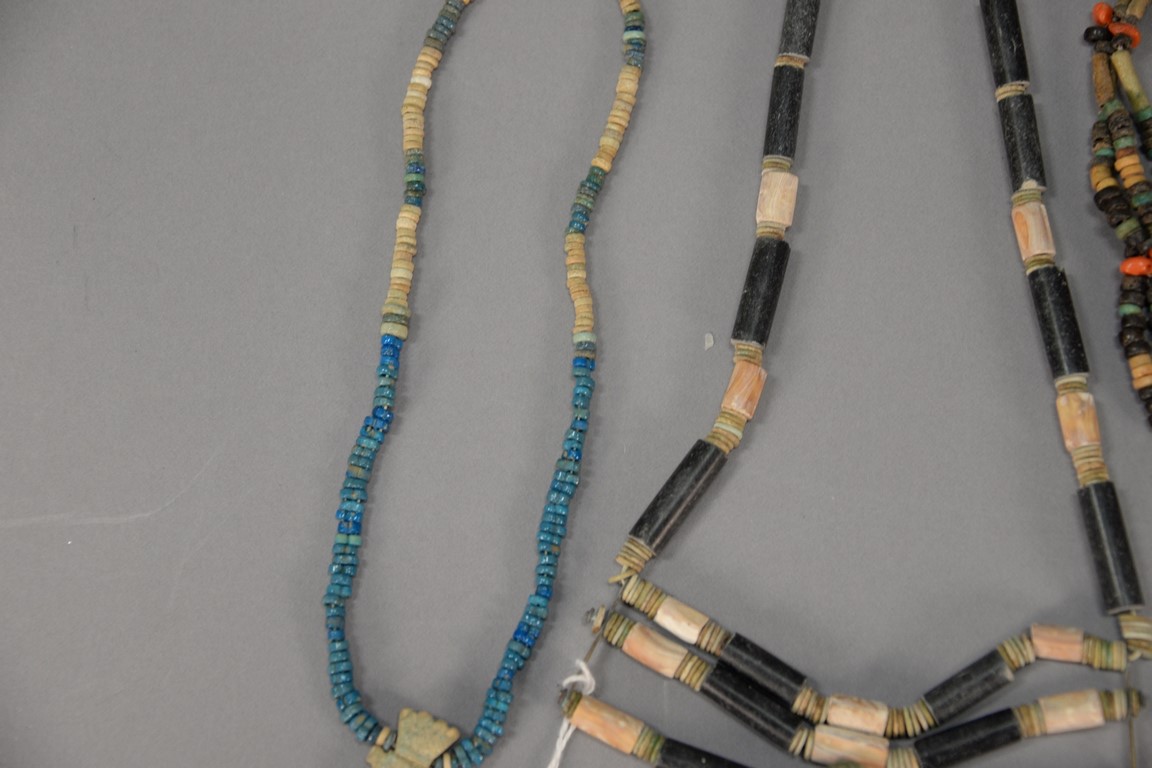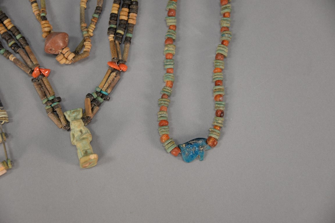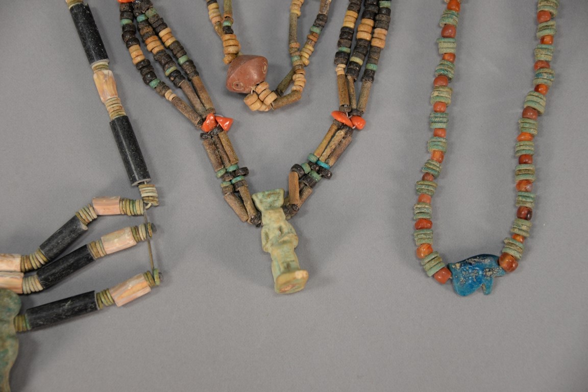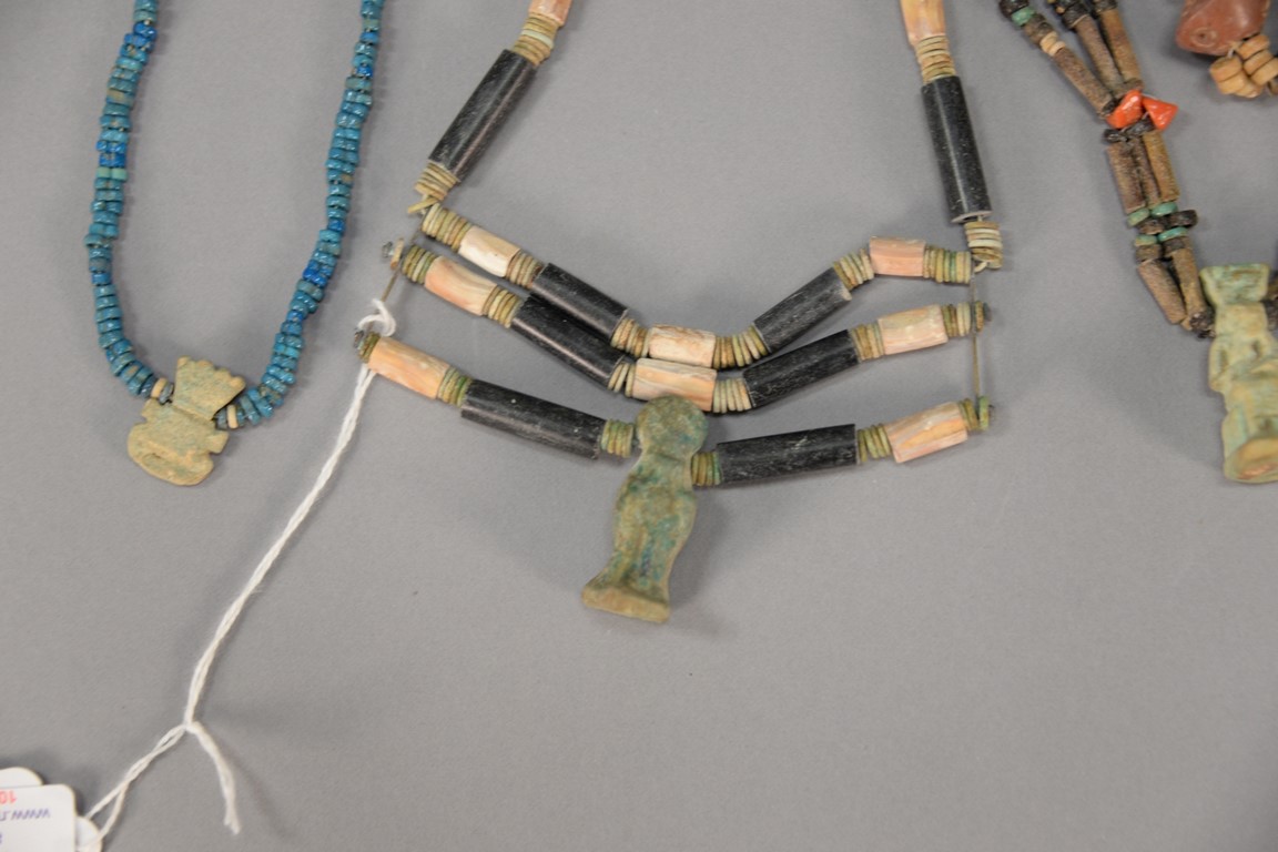 Lot 181: Group of four Egyptian Faience beaded necklaces with stone glazed figures.