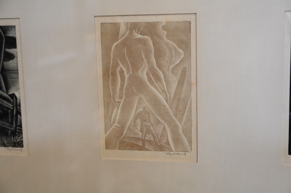 Group of Three Lynd Kendall Ward (American, 1905 – 1985), woodcuts on paper, each signed in pencil in the lower margin, and one date…
