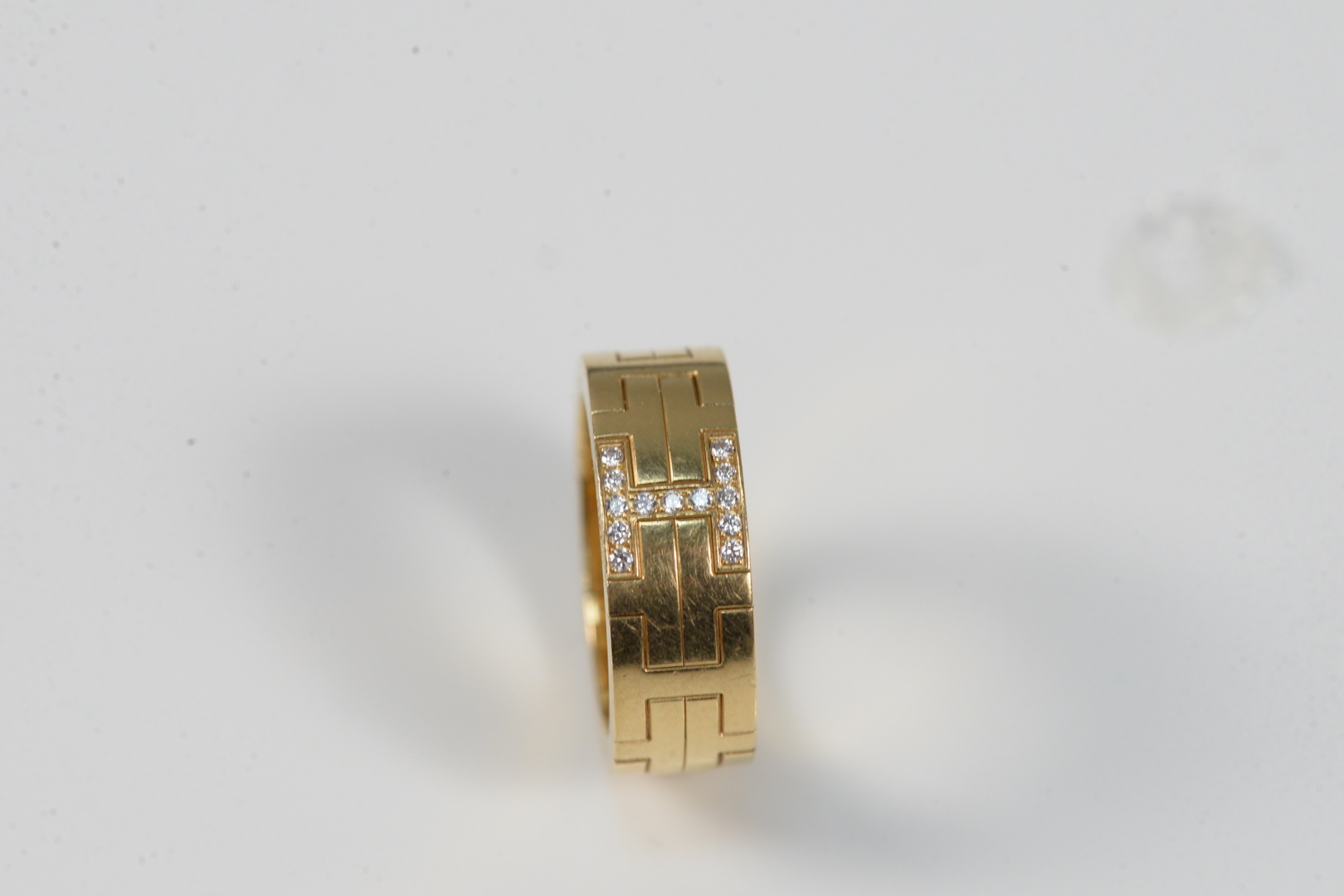 Lot 181: Hermes 18 Karat Gold Kilim Ring set with thirteen brilliant cut round diamonds size 6 3/4 .10 carats 10.8 grams