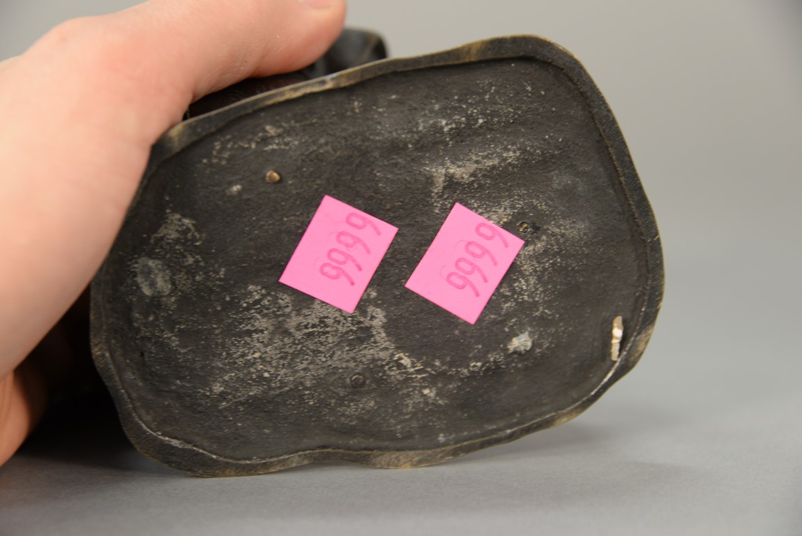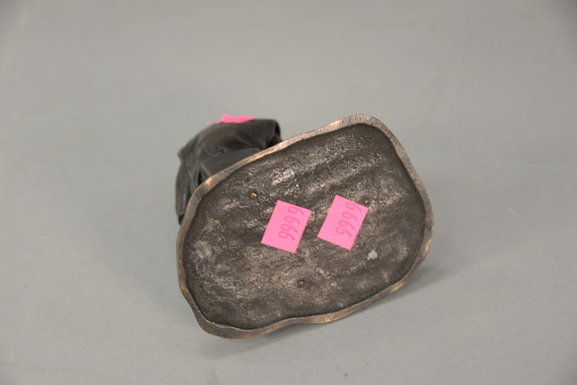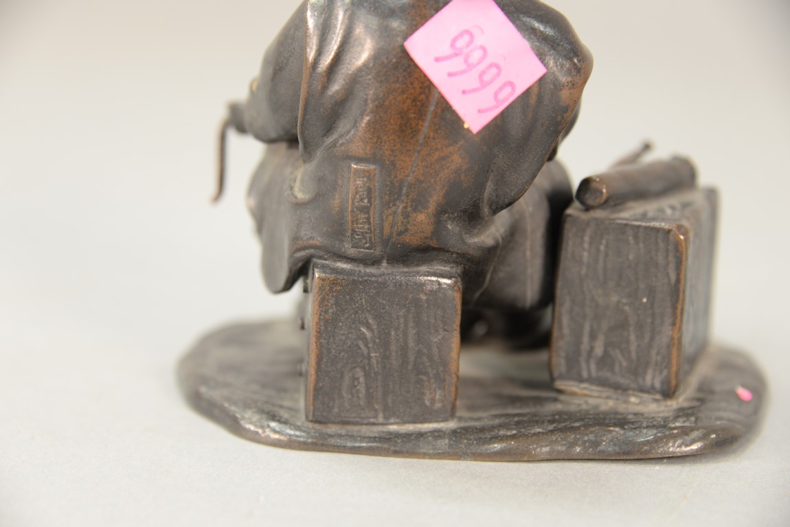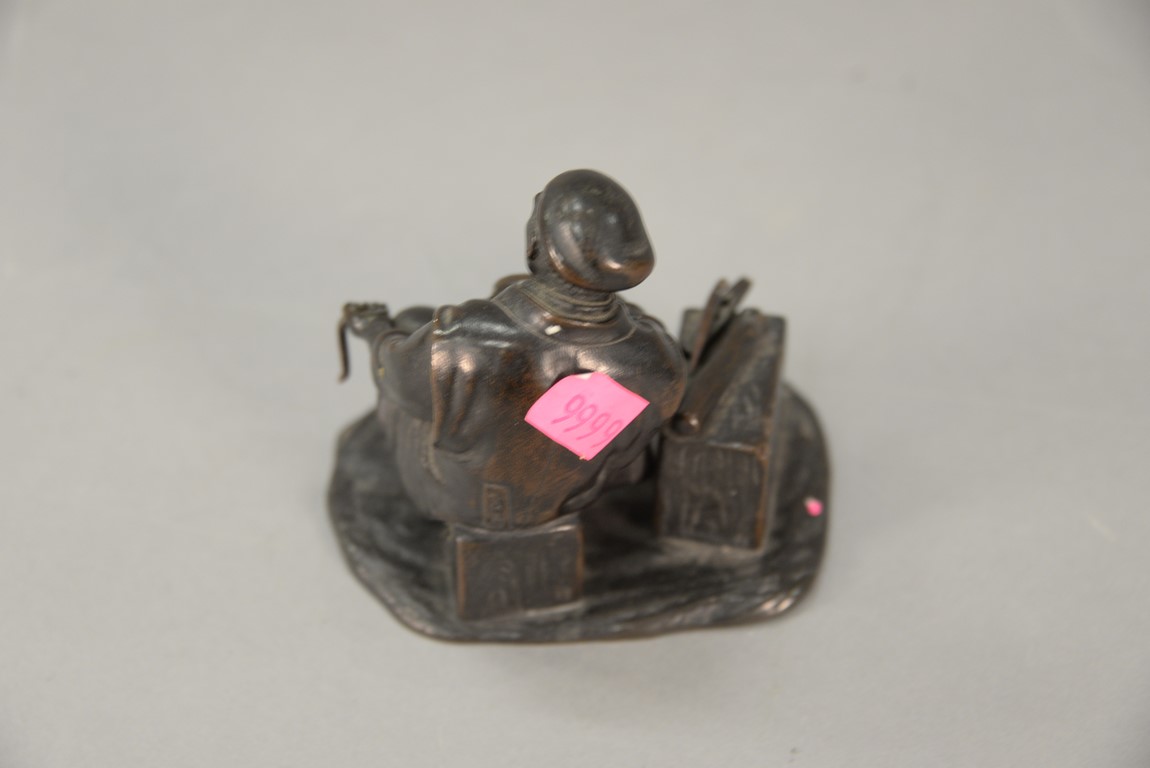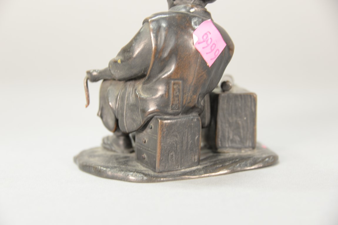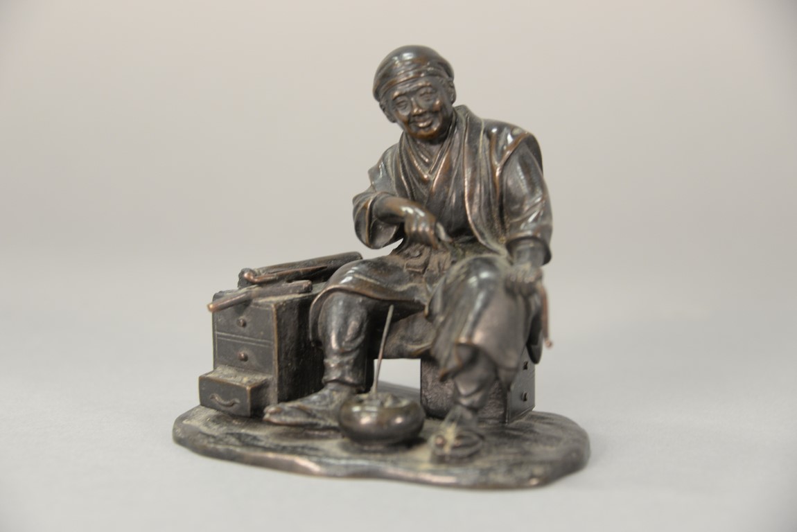 Japanese bronze figure of scholar seated, making pipes. ht. 4 in.