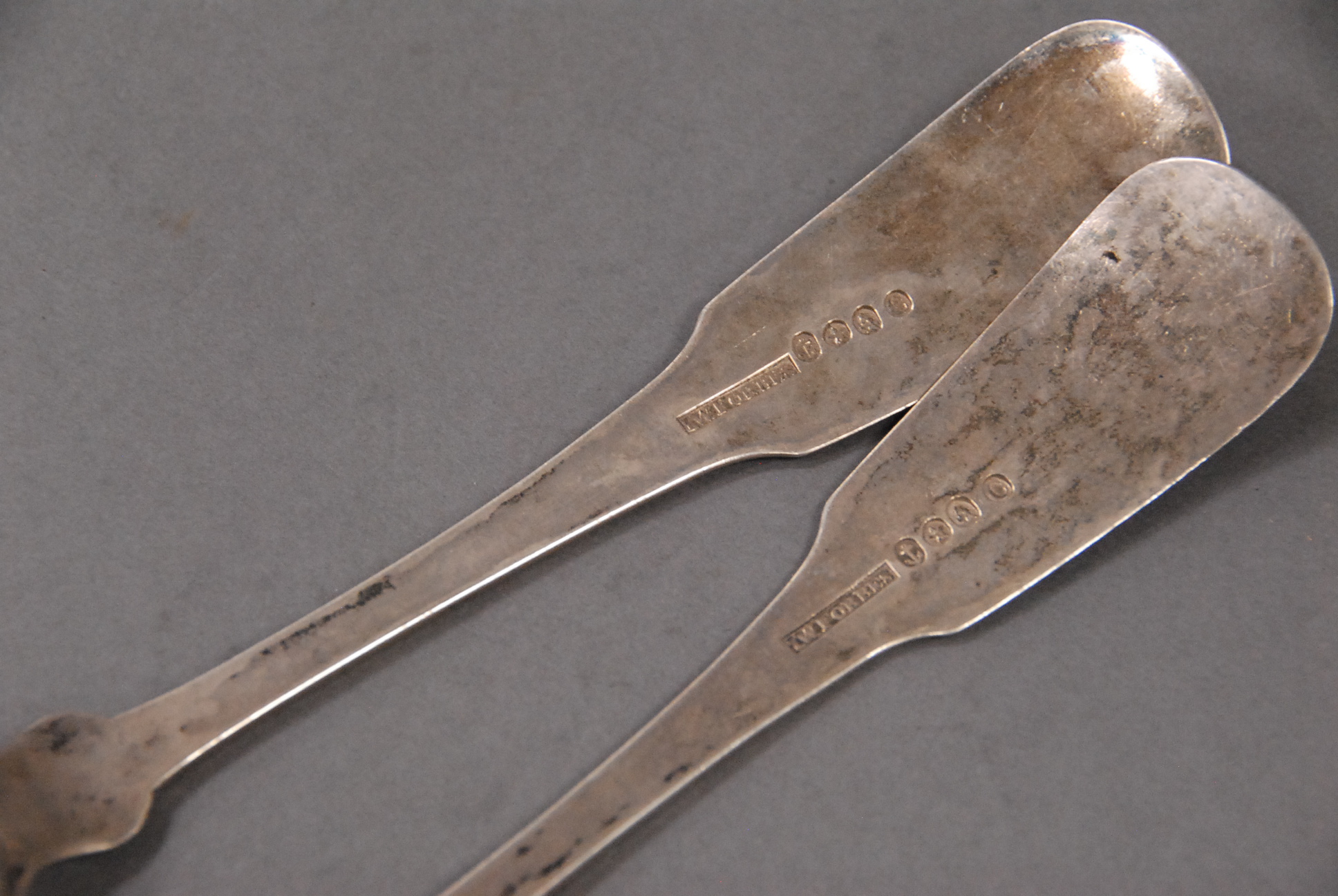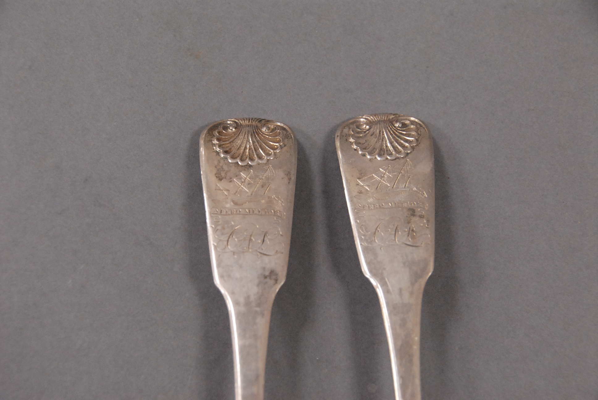 Pair of silver tablespoons with engraved sailing ships, 4 troy oz.