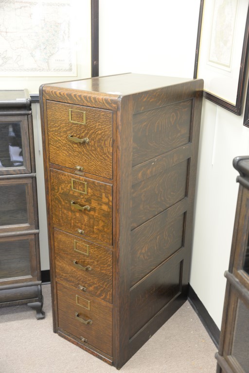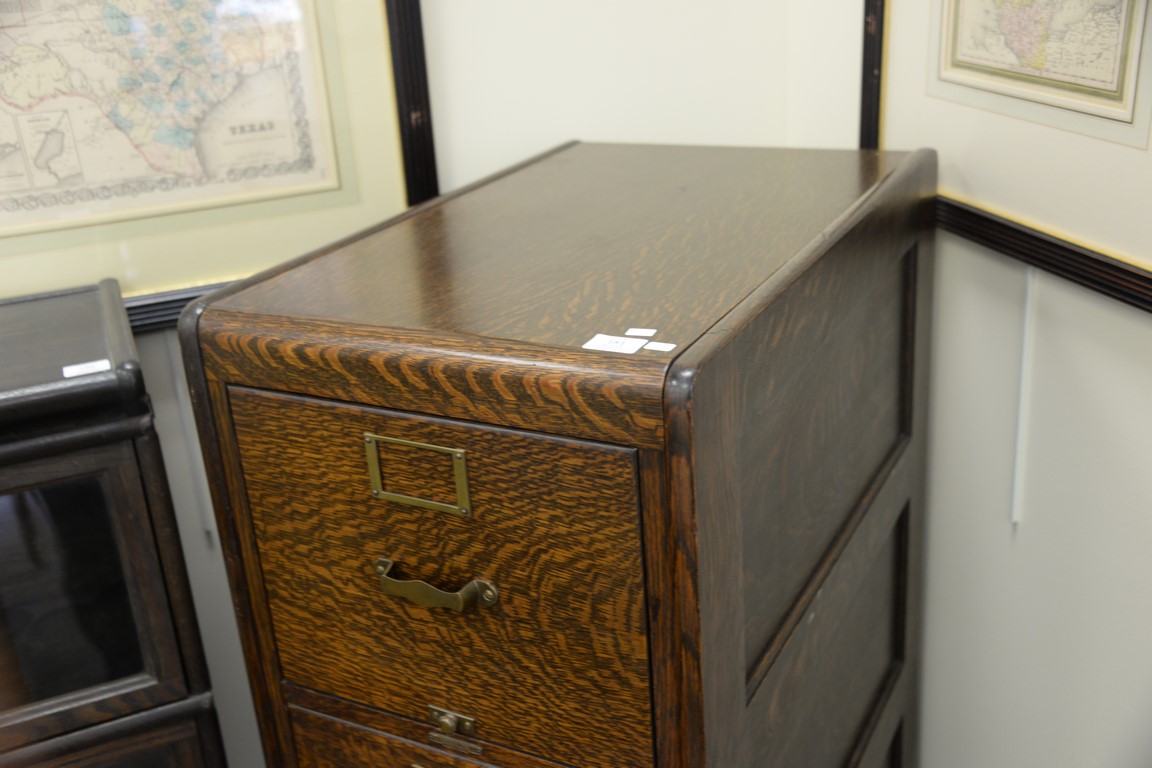 Lot 181: Remington Rand oak four drawer file cabinet. ht. 52in., wd. 17 1/2in., dp. 26 1/2in., drawer size: 25 1/2 x 12 3/4