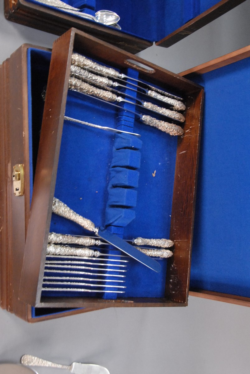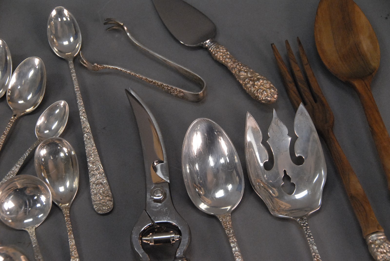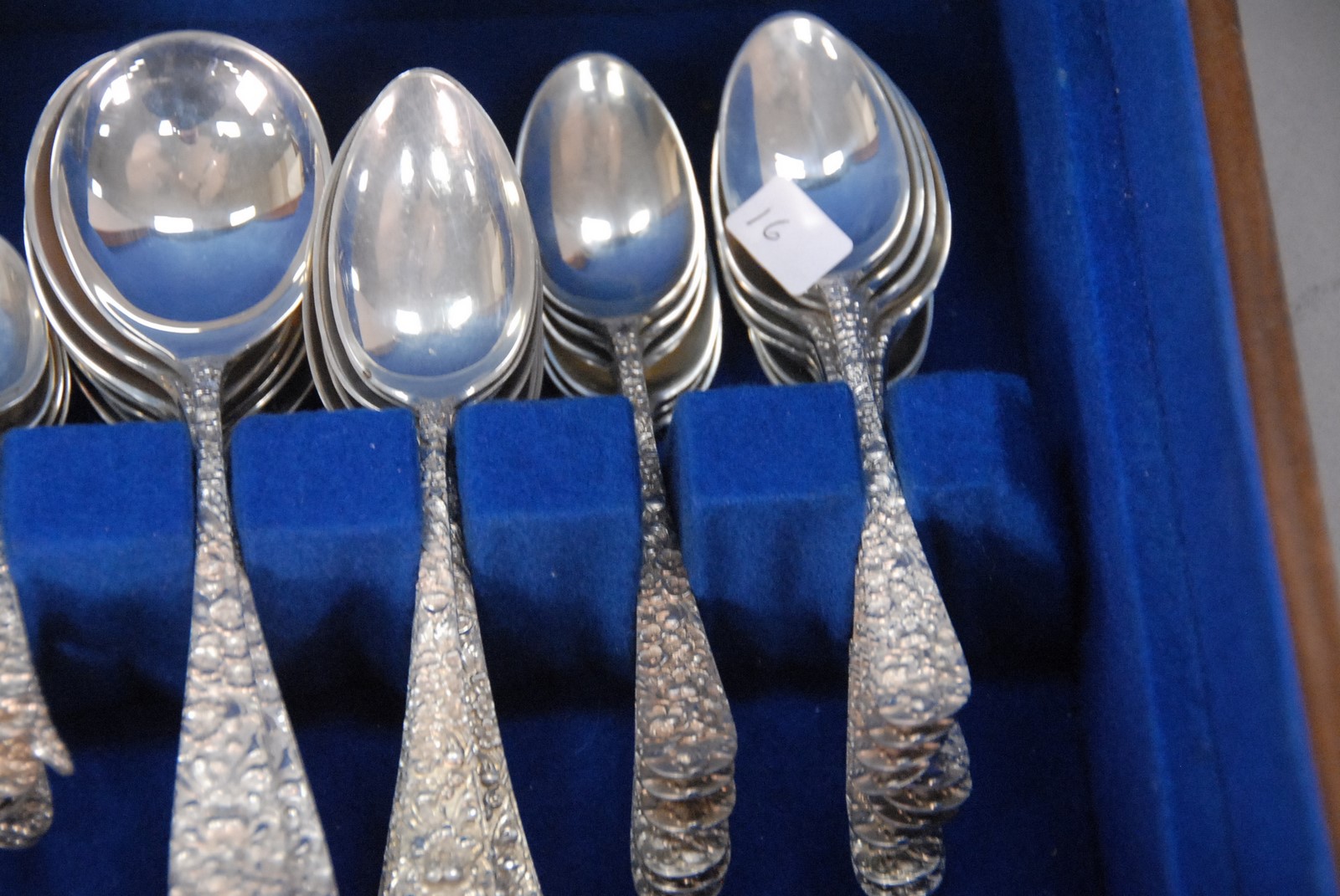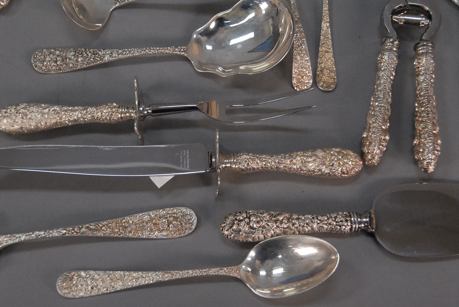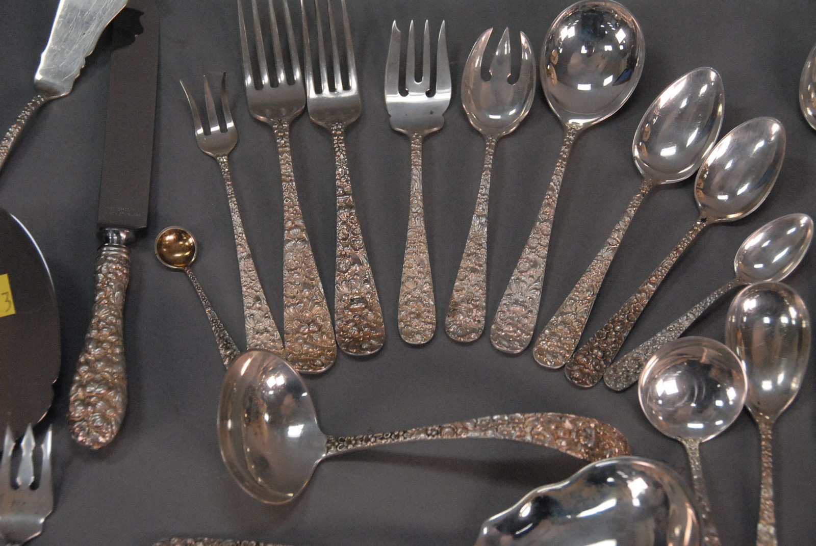 Stieff sterling silver flatware set repousse pattern. 135.1 t oz. plus twenty-one handles