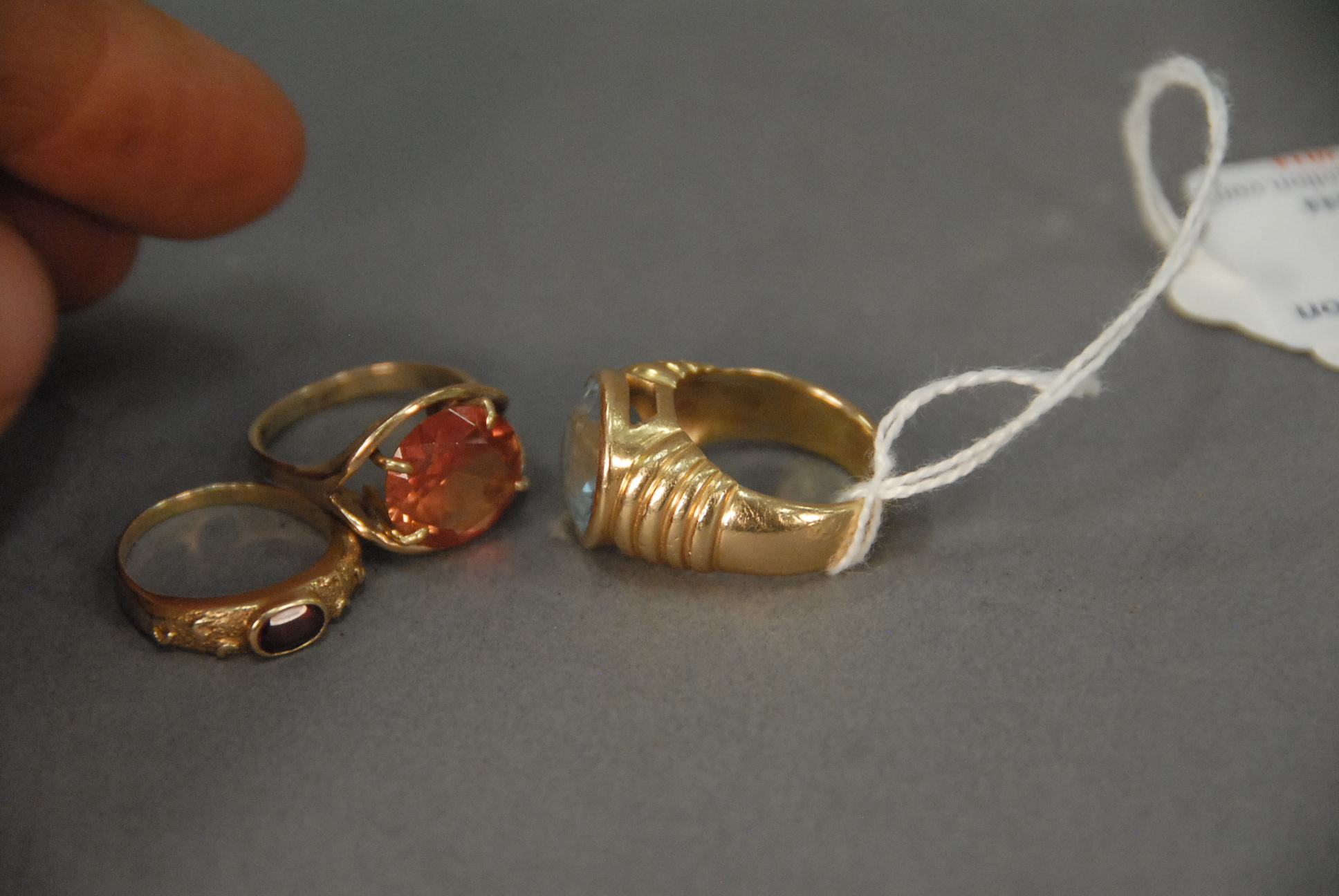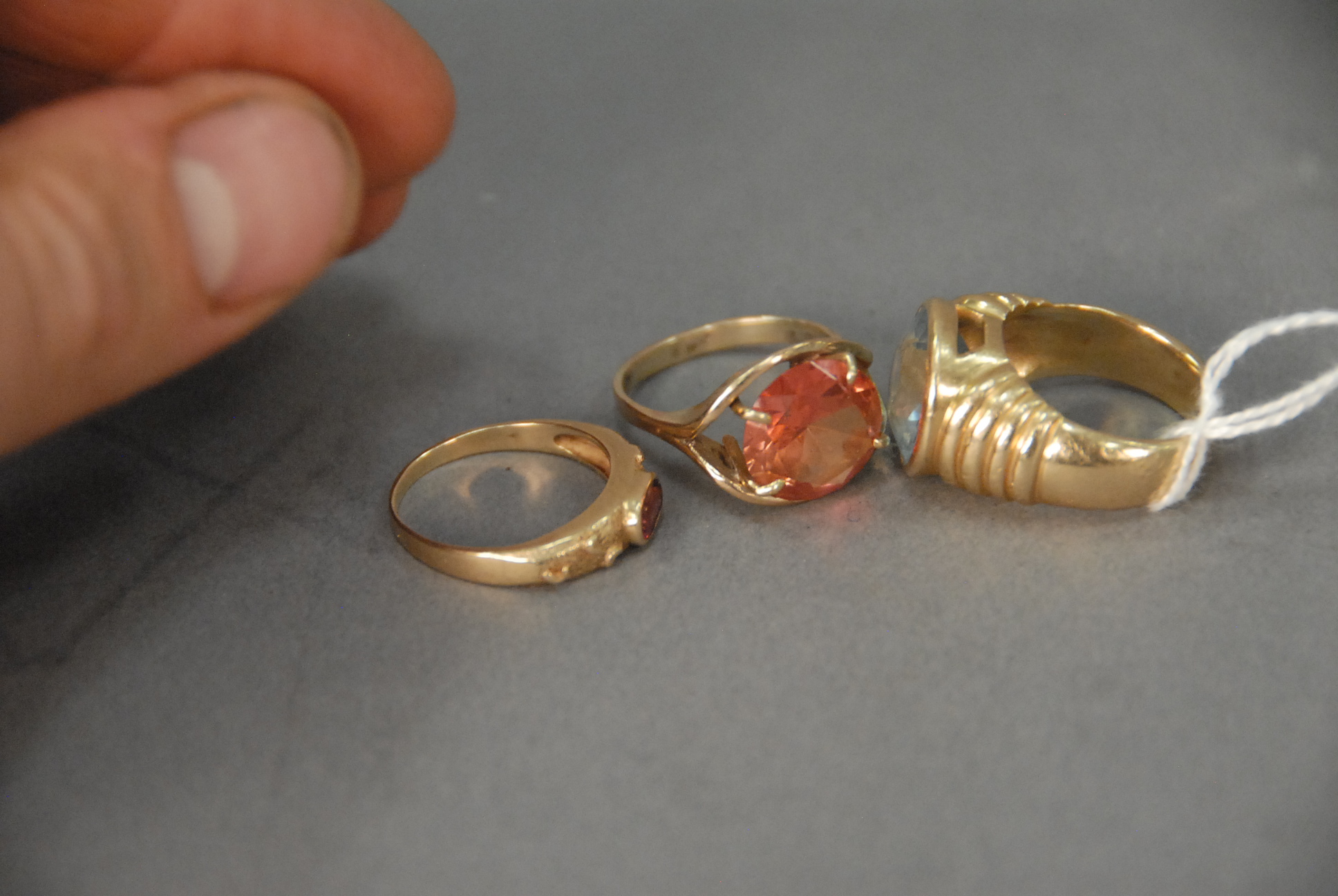 Lot 181: Three 14K gold rings mounted with stones, 23 grams.