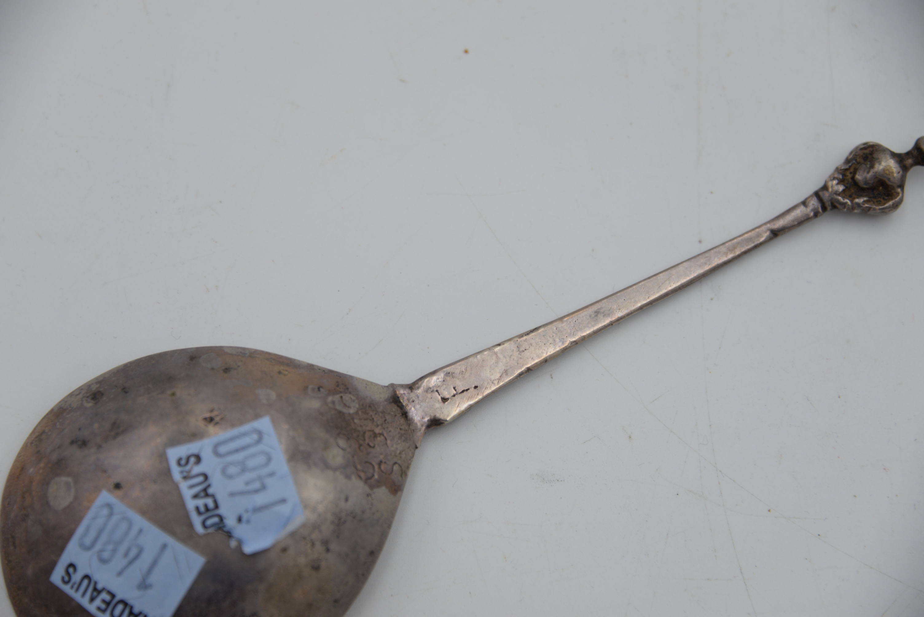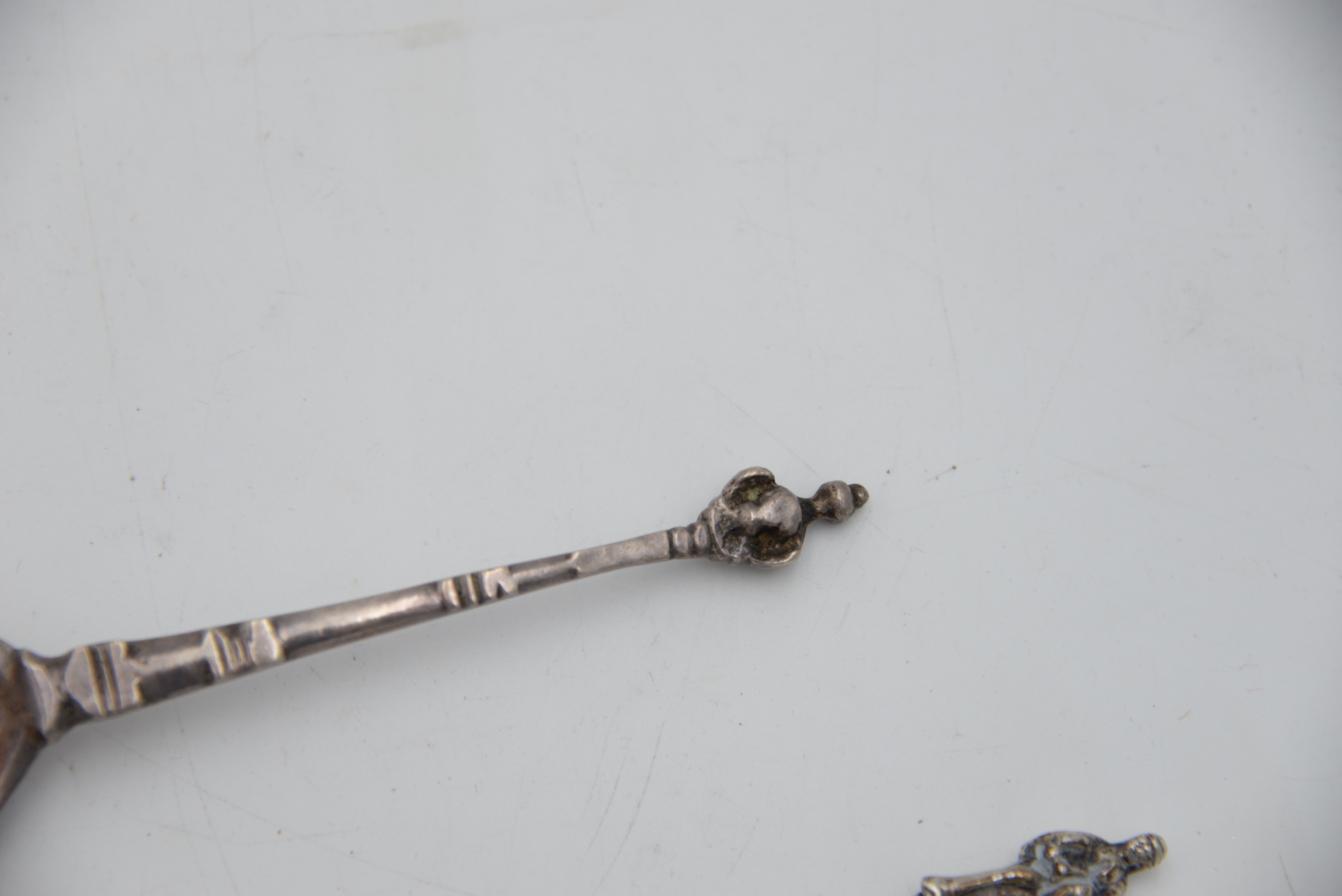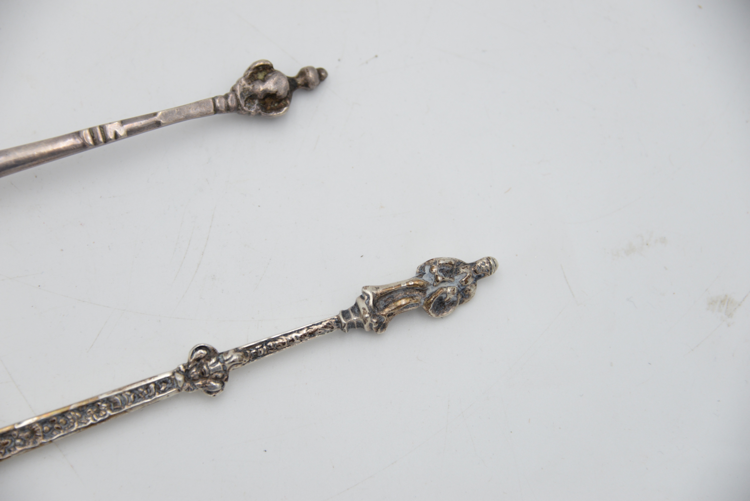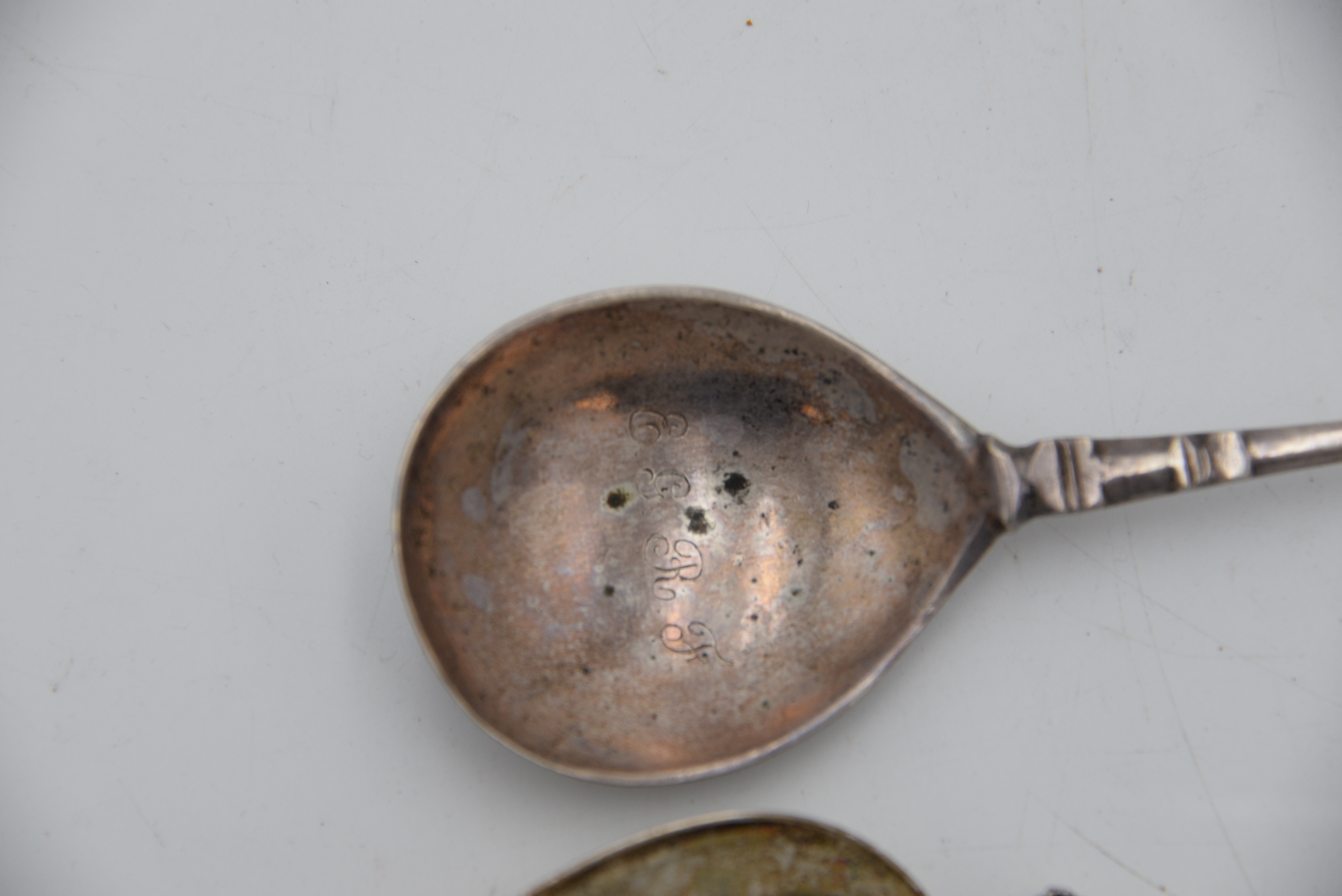 Two Apostle Silver Spoons, having figural end and putti face, one having crown end, possibly Dutch, length 7 1/2 inches, width 2 inches, 2.9 t.oz.
