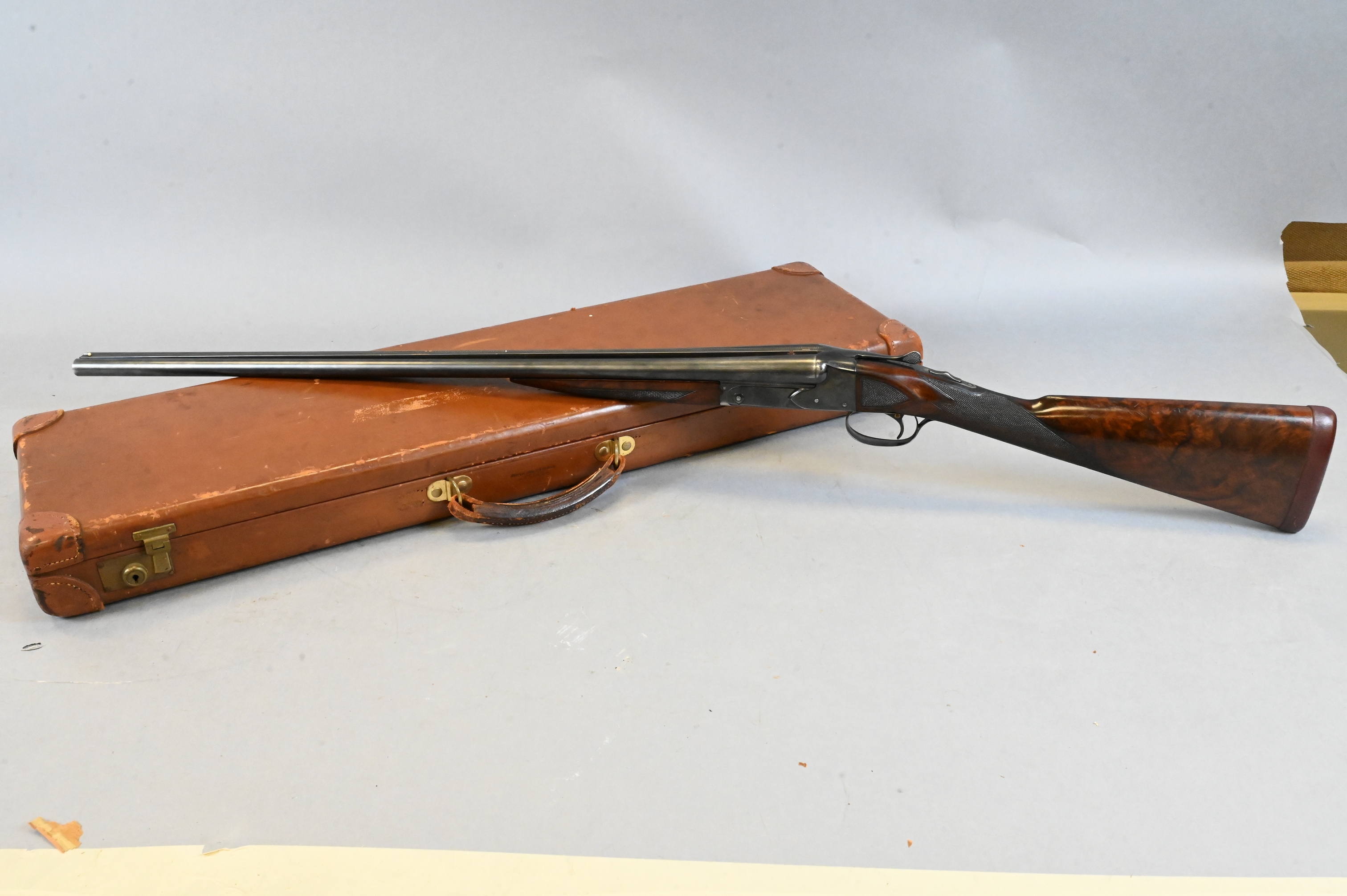 2 3/4 choke, serial # 28740, with fitted leather hard case, barrel length 28 inches, pull length 14 3/4 inches