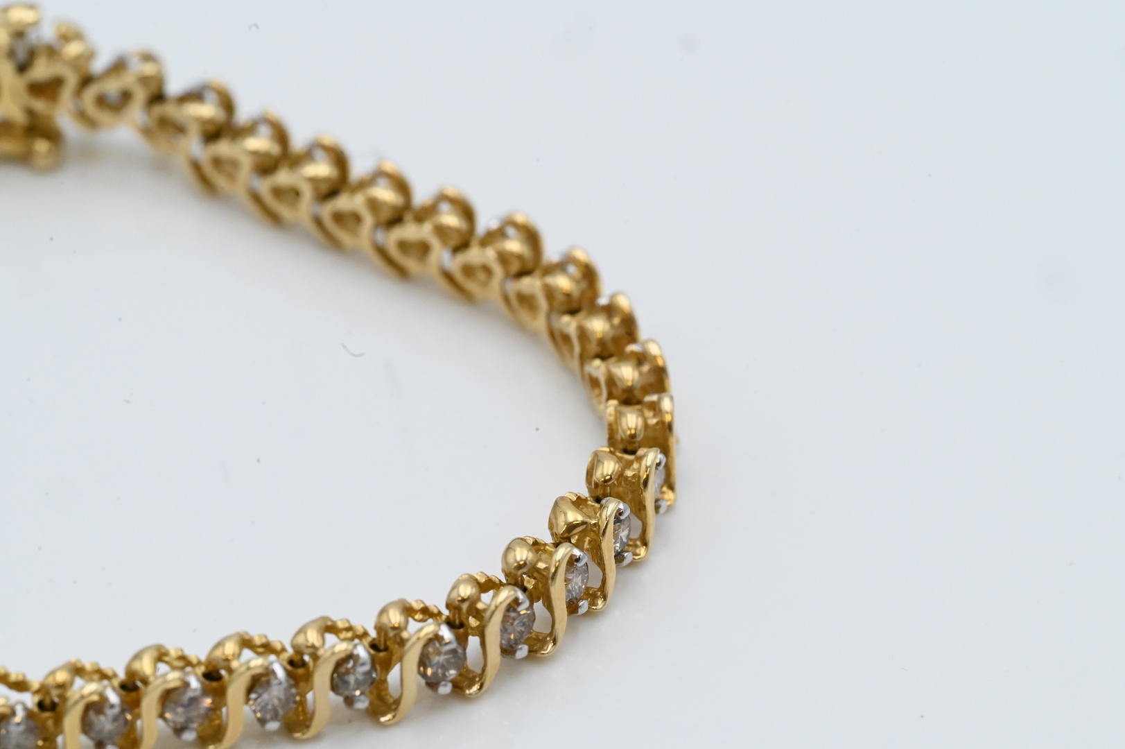 14 Karat Yellow Gold and Diamond Inline Bracelet