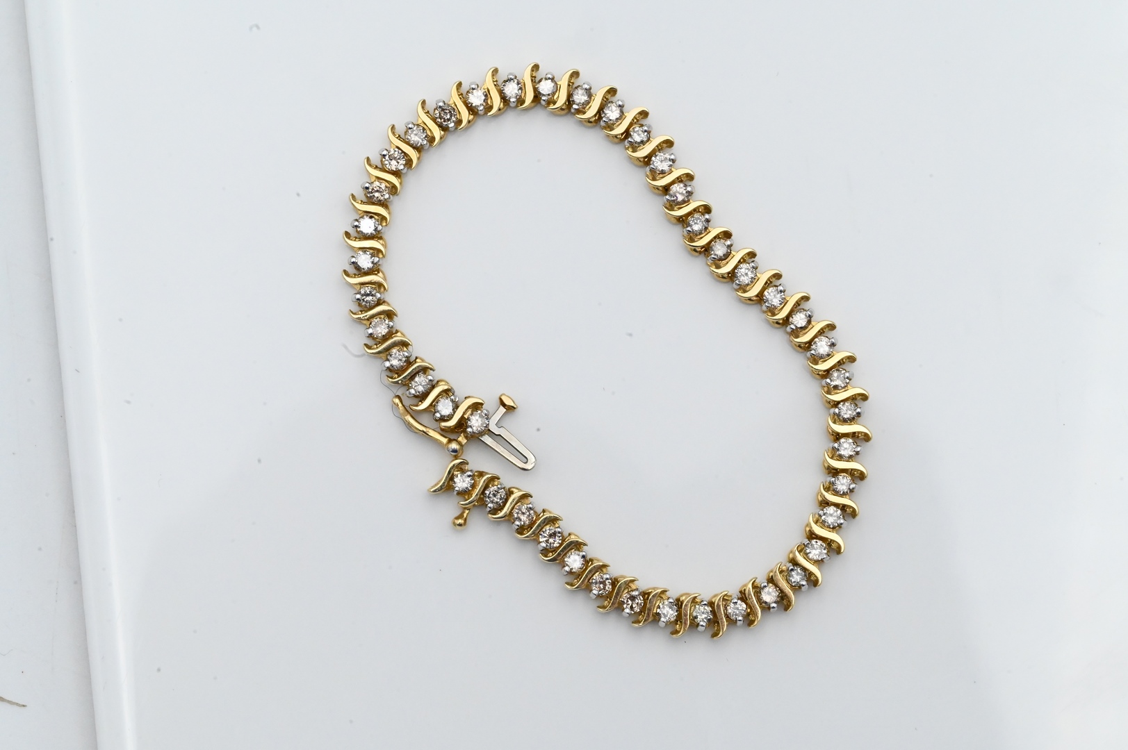 Lot 182: 14 Karat Yellow Gold and Diamond Inline Bracelet
