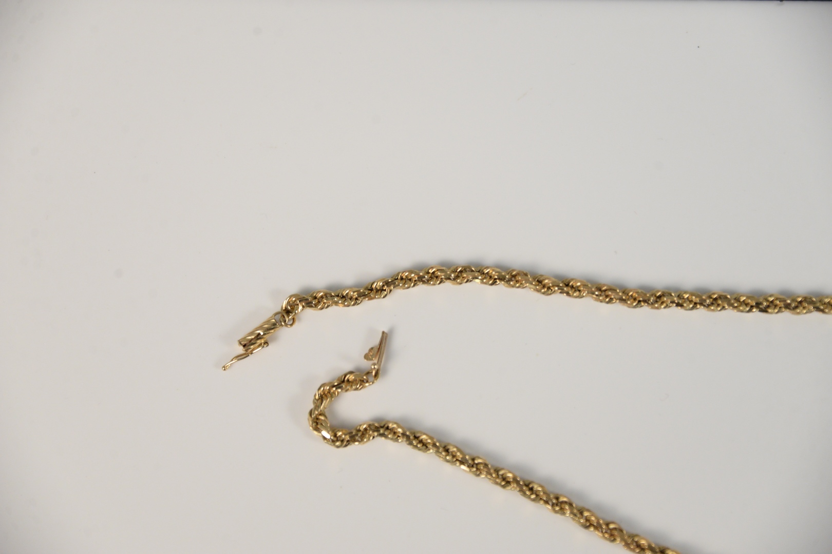 14K gold rope necklace, lg. 18 1/2, 24.4 grams.