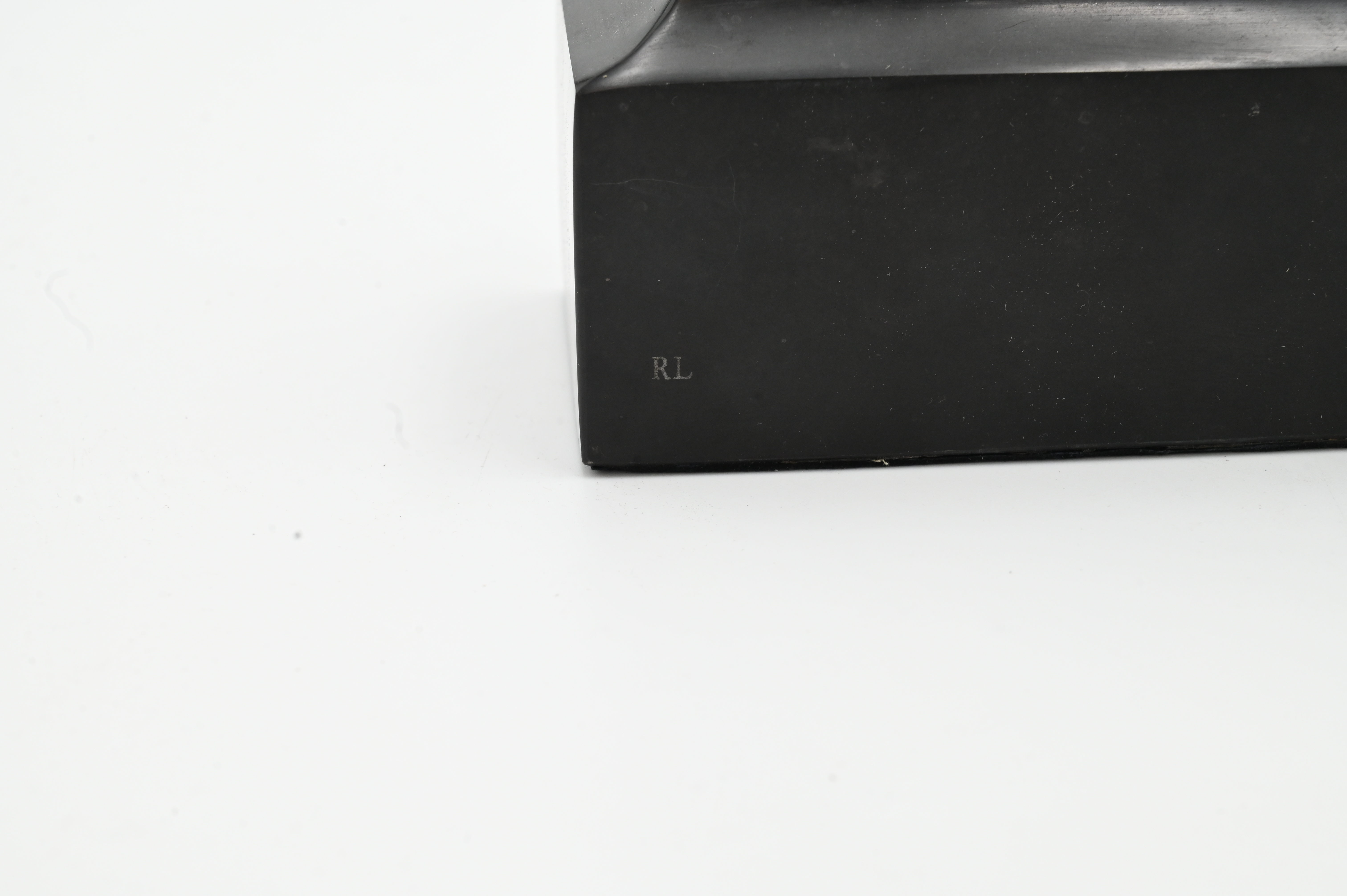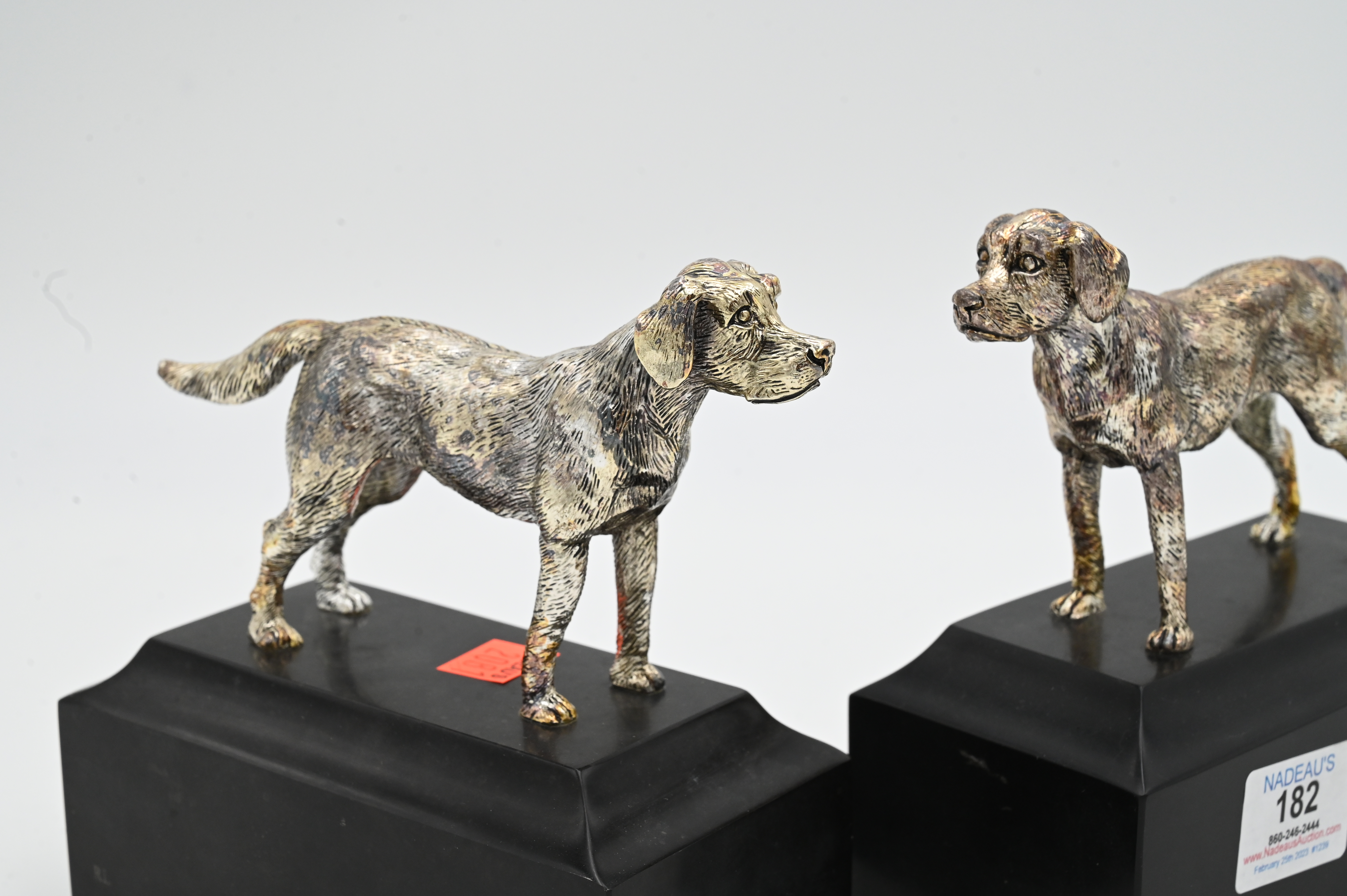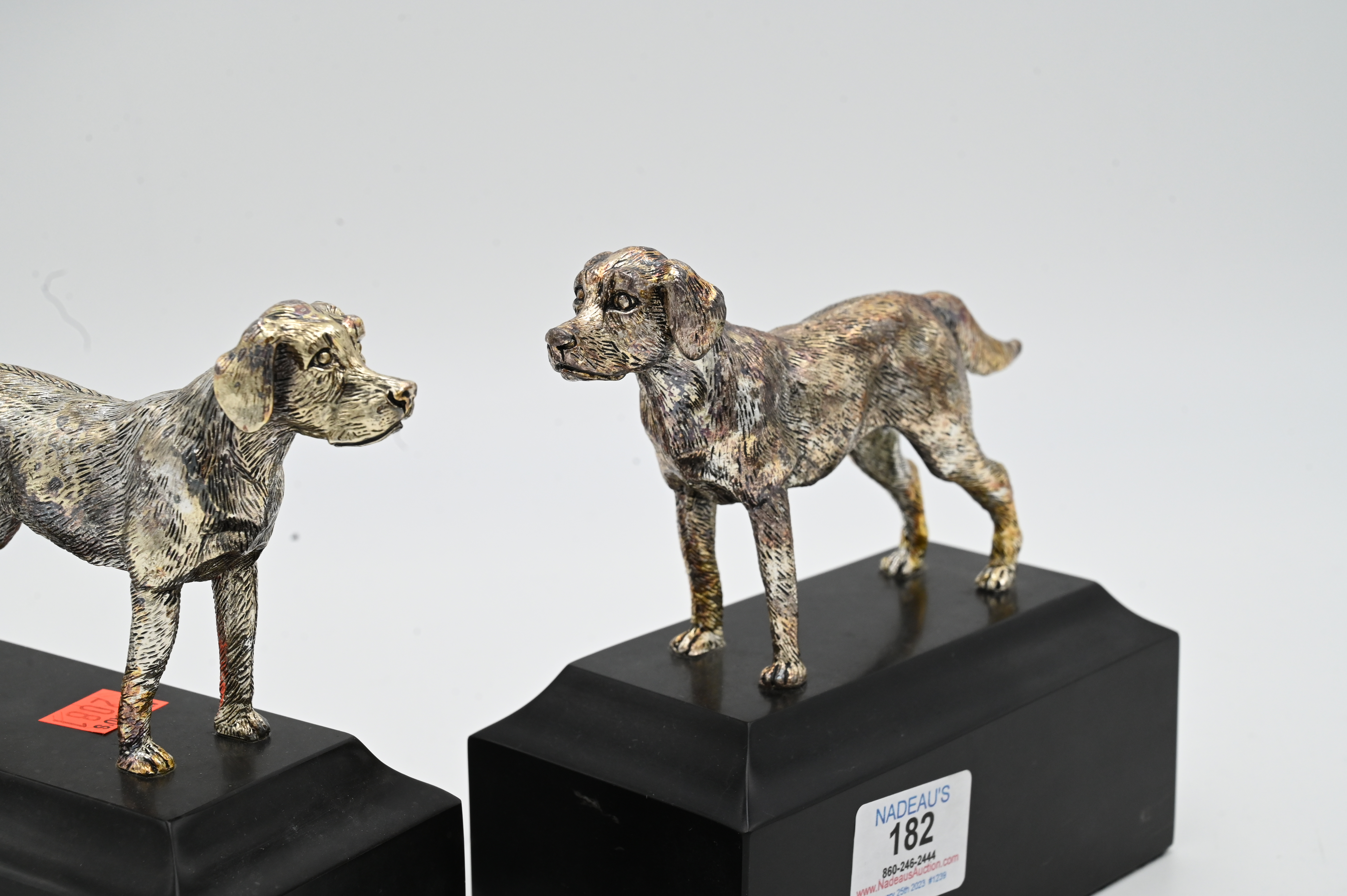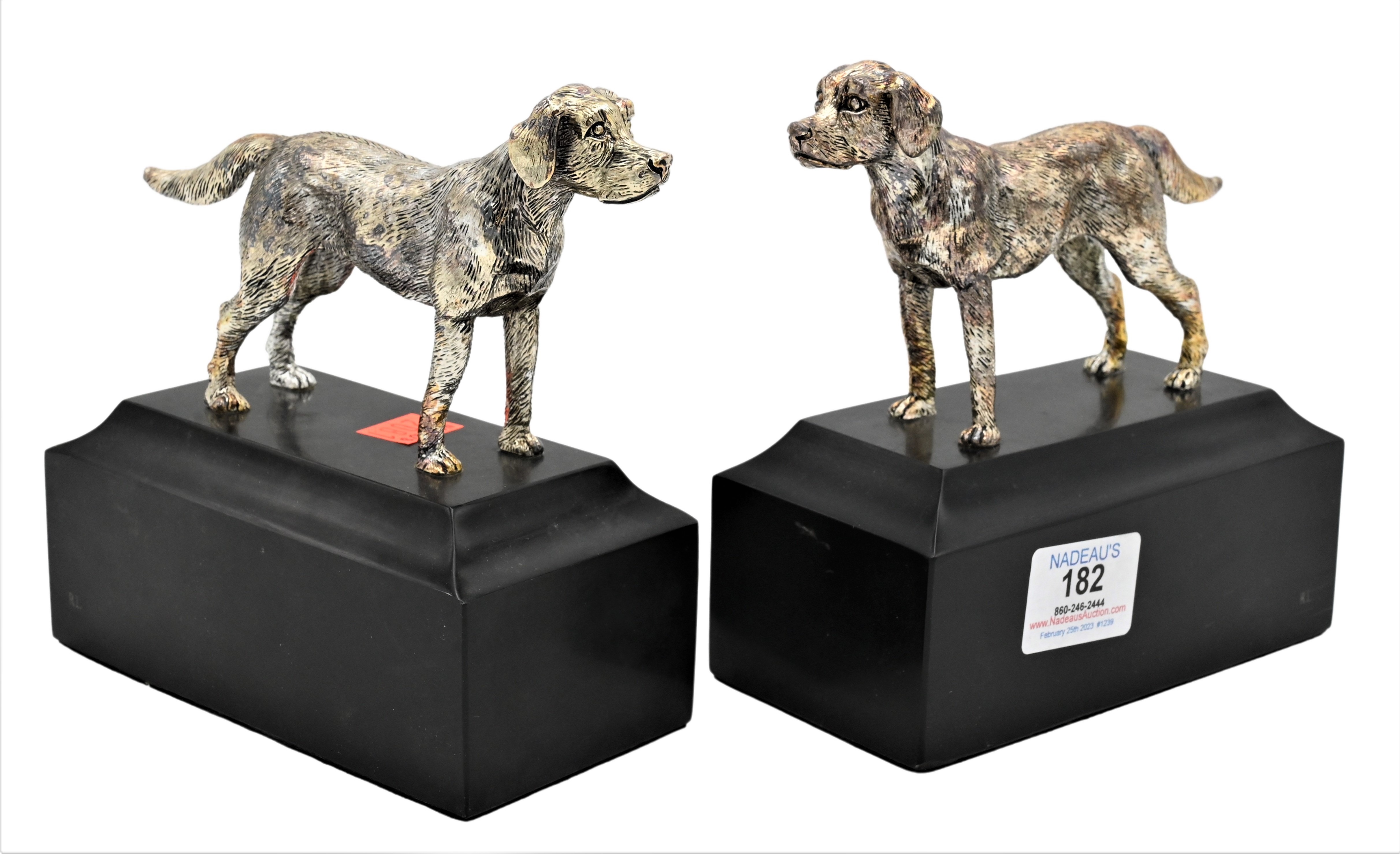 A Pair of Ralph Lauren Crocker Dog Bookends, to include golden retriever or labrador on slate base, marked “R.L.”, height 6 inches.