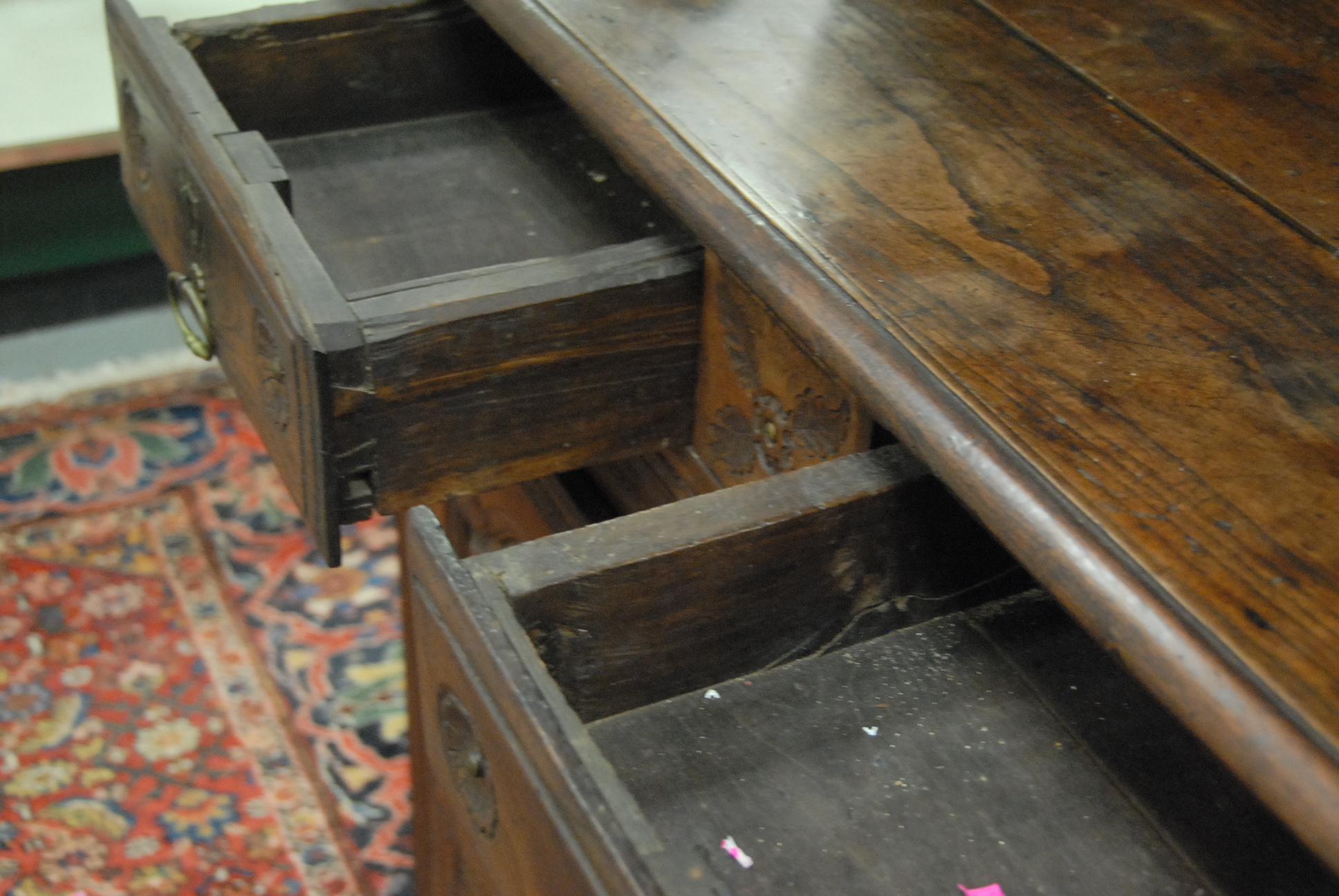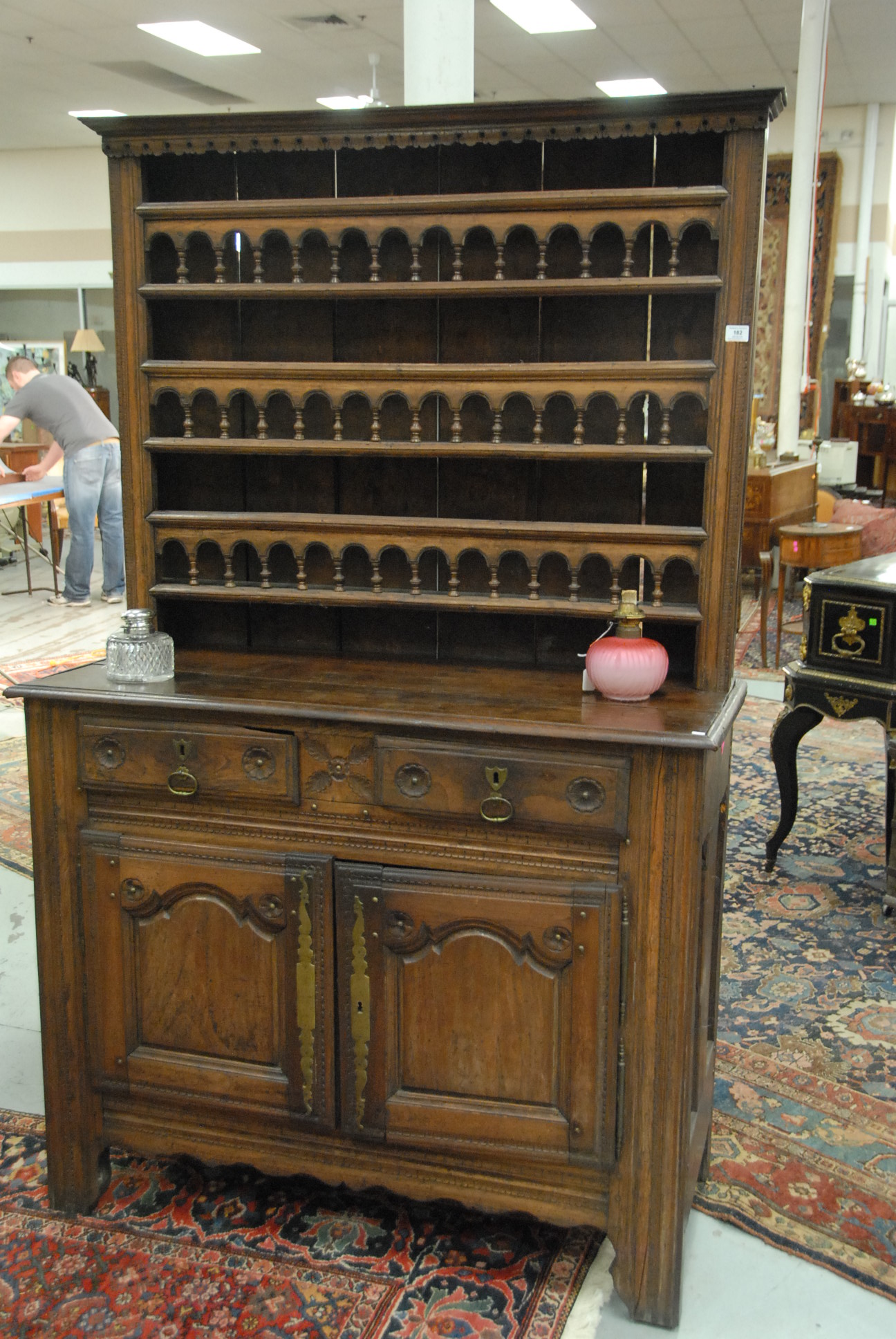 Lot 182: Country French cupboard with open top on cabinet base with doors and drawers, 18th century. ht. 79in. wd. 49in.