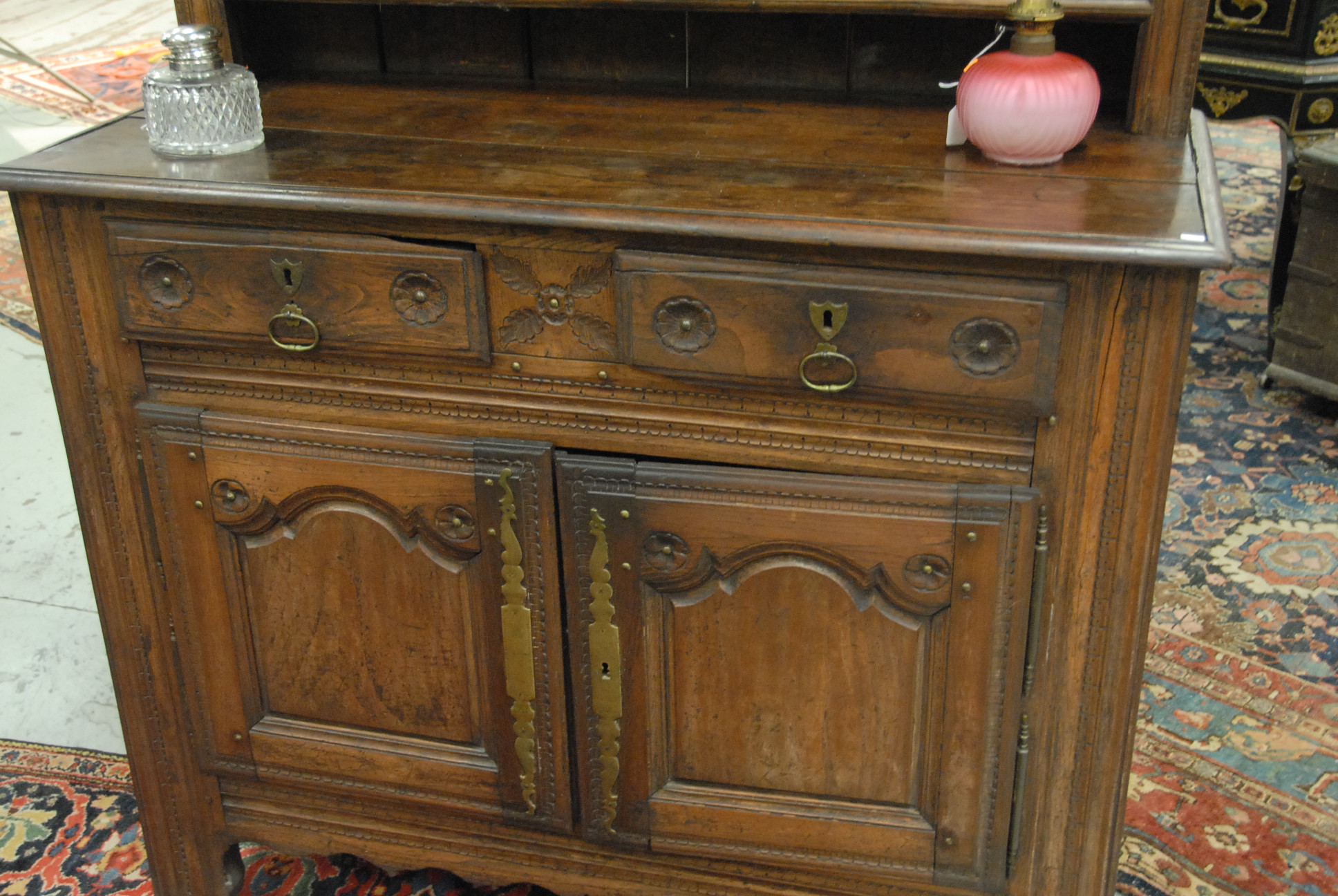 Country French cupboard with open top on cabinet base with doors and drawers, 18th century. ht. 79in. wd. 49in.